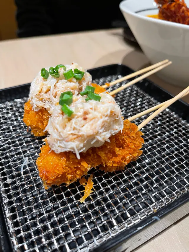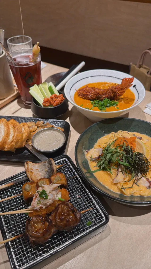 ✅雞肝多士/ 椒鹽蜆仔肉/ 麥粒味噌青瓜。三款都幾好食,特別蜆仔肉好送酒!雞肝醬就一般內臟味道,而青瓜要來解解膩都啱晒。-✅✅蜜瓜牛卷/ 蟹肉牡蠣。呢兩個由我上次食已經覺得好食同埋抵食👍🏻蜜瓜牛卷大大嚿,清甜嘅蜜瓜被燒得好香嘅牛肉包裹住,中和左油膩感。最重要係搽咗燒汁燒都唔會遮蓋咗牛同蜜瓜嘅味道,好balance🤗吉列牡蠣炸得香脆,入面肥美。最重要係面頭嘅蟹肉多到成堆山咁!-✅葡萄鴨卷/ 櫻花蝦豆腐。葡萄鴨卷都做到balance,不過佢就比較細粒,勝在唔會食到鴨臊味😬 櫻花蝦豆腐都好食,濃味嘅櫻花蝦包住淡味嘅豆腐,不失豆香🥸不過如果叫苦蝦湯麵就唔好叫呢個了。-❌蔥燒牛舌/ 玉子鰻魚。蔥燒牛舌得兩粒,中間用蔥夾住。當日嘅葱銷得比較燶…而牛舌亦食唔出肥美爽脆嘅感覺,仲要加$2… 玉子鰻魚係用玉子包住鰻魚,再拎去炸。可惜鰻魚冇乜存在感,主要食日本嘅甜蛋🥺-✅✅牡蠣白湯麵。呢個白湯因為有蠔嘅關係,所以味道偏腥。鍾意食蠔嘅人可能會覺得係鮮味😛都幾濃郁,不過質地唔會太厚👏🏻佢哋嘅冇乜彈性,所以比較適合呢個湯。飲落去每一啖都好重蠔味,特別好似啲蠔嘅內臟肥美嘅味道,好視乎個人口味,我就幾鍾意。不過送嘅份量比較少,只有兩隻中至大size嘅殼。-✅虎蝦濃湯麵。呢個蝦湯麵真係飽到傻😂好漏!但個蝦湯真係好濃稠好杰,煮到醬咁。所以配埋麵食會有啲一patpat。隻虎蝦炸得好脆,用大量櫻花蝦包裹住,蝦香double呀!入面的蝦肉都結實唔霉。不過個人對於呢個麵真係一般般。…查看更多