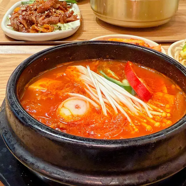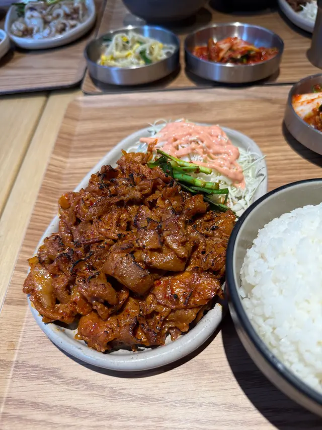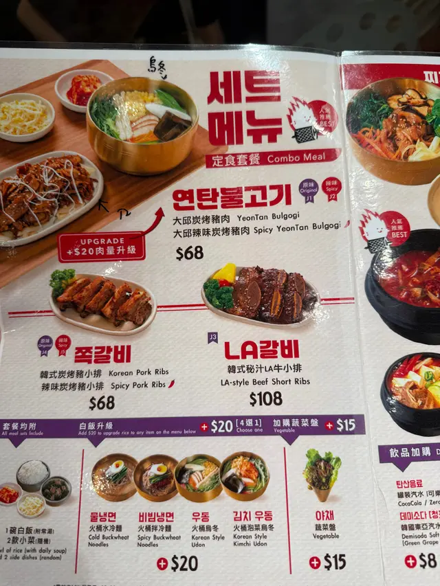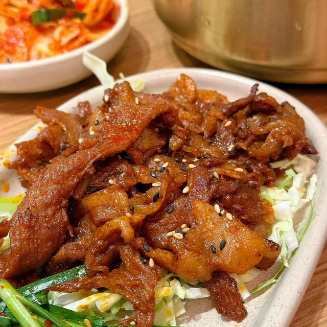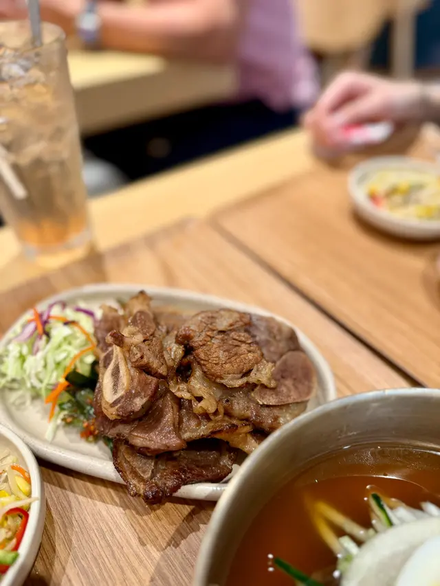 韓國街新開店舖🇰🇷天氣唔好都仲好多人幫襯$68食到韓國燒肉套餐,仲有其他鍋物前菜有泡菜、大豆芽、辣韭菜、沙律椰菜,相當豐富▶️ 炭燒煙燻鴨肉定食套餐Smoked grilled roasted duck set ($68)炭燒煙燻鴨肉份量勁多🤯每片帶少少肥膏,入口唔韌🦆雖然未至於好香煙燻味,但點埋旁邊醬油已經足夠轉火桶烏冬(+$20)幾有誠意,上面有天婦羅碎、冬菇、紅蘿蔔絲烏冬粗身,算煙韌彈牙🍜唔想食白飯值得轉▶️ 大邱辣味炭烤豬肉 Spicy YeonTan Bulgogi x2 ($68)兩個朋友都揀呢個炭烤豬肉薄切,炒到焦香肉多少肥膏,辣辣哋好惹味🐷轉水冷麵 (+$20)夏天怕熱可以試試-應該係暫時韓國街食過叫又好食又抵食嘅韓國菜❤️🔥炒豬肉整得好食😋見隔籬枱叫嘅LA beef都似模似樣環境OK,坐得舒服服務員態度好,上菜速度快,擺盤整齊性價比高,加一後$100/人*全自費非試食…查看更多