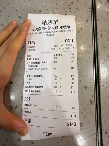 呢間新嘅台式料理餐廳主力推廣雞肉🍗🐔 非常多款式,有招牌嘅雞腿肉,仲有好多便當小菜蛋餅等等✨ 非常豐富🥰 價錢仲要好平🤩 🔸 火火招牌雞腿飯 (大) ($64)雞腿肉質鮮嫩💕 非常滑😍 而且係去骨又好多肉🐓 份量夠多✨真心推薦😆🔸 台式炭燒奶茶 (+$10)飯仲可以用優惠價錢加配飲品🤩 炭燒奶茶嘅炭燒香味好突出💛 甜度冰度都可以自選👍🏻🔸 火火蜜汁烤雞腿 ($38)有兩隻烤雞腿🍗 外層少少脆但裡面嘅肉質仍然軟嫩🥰 食得出蜜汁嘅香味🍯🔸 魯溏心蛋 ($12)溏心蛋嘅流心剛剛好🩷 而且醬油加蔥令溏心蛋更入味✨🔸 涼拌小黃瓜 ($12)酸酸嘅前菜都好開胃🤤整體而言,食物味道唔錯,價錢超抵🤩 性價比超高❤️ 特別推薦佢哋嘅雞腿肉,非常好食✨…查看更多