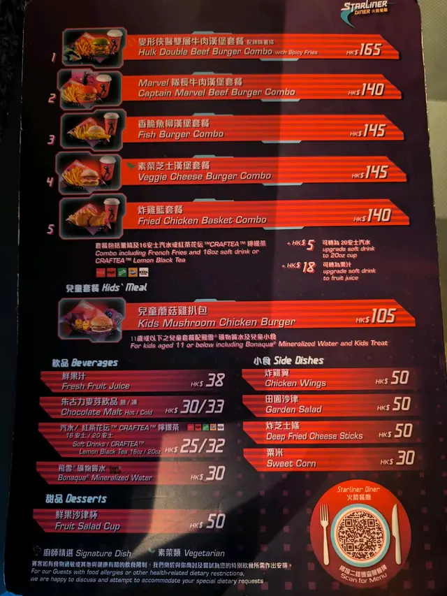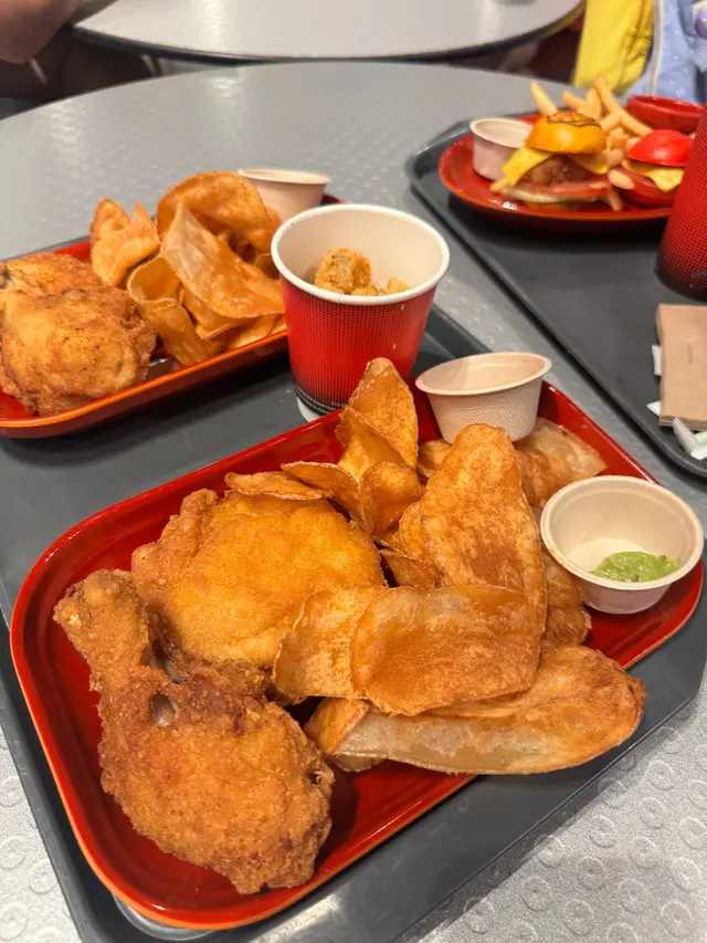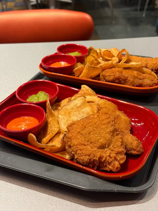 (收據在最後)真係超級耐冇食過火箭餐廳。有驚喜有驚喜以前食雙層牛肉漢堡好怕它的紅色紅菜頭包皮十分之硬很難吞嚥,今次我們叫了兩個餐一個是單人炸雞餐,令一個是蝦寶餐。炸雞餐,炸雞揸到金黃酥脆雞肉嫩滑(完全好似坊間KxC . Mx Dxxxx) 一樣完全沒有鞋口感覺。另一個是蝦寶餐,黑色包皮係墨汁整成,完全沒有難吞咽感覺很柔軟,很喜歡這個感覺蝦肉彈牙外面脆口. 真係好快就食晒啦。薯條當然不在話下當然是我們喜歡的質感及粗度很酥脆好新鮮。 …查看更多