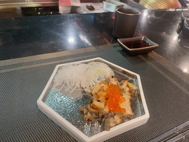 瑩光魷魚沖漬、 魚子醬豆腐配胡麻醬
