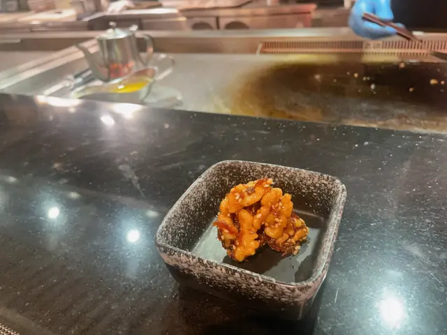 火舞町 FUMU 火舞の12品極尚和牛龍蝦鐵板燒套餐⭐️ 瑩光魷魚沖漬Firefly squid in soy sauce, a dish that showcases the flavors of fresh squid with a tangy and vibrant marinade. It is a delightful appetizer that sets the tone for the rest of the meal.⭐️ 魚子醬豆腐配胡麻醬Another appetiser is Caviar tofu in sesame dressing. The combination creates a harmonious blend of flavors. ⭐️ 上刺身盛(五點)The course continues with a platter of assorted sashimi, featuring five different types of fresh and carefully sliced raw fish. The sashimi is presented beautifully and offers a variety of textures and flavors, showcasing the finest quality seafood.⭐️ 香煎澳洲龍蝦尾The highlight of the set menu features a grilled Australian lobster tail. The lobster is cooked beautifully, with a succulent and tender texture. The grilling process adds a smoky flavor that enhances the natural sweetness of the lobster meat.⭐️ 日本大分縣A4和牛西冷厚燒The thick-cut A4 Wagyu sirloin from Oita is not as perfectly cooked as expected. It’s not as tender as you thought about Japanese Wagyu but it’s beautifully plated. ⭐️ 日式風味雞肉炒飯⭐️ 日式蜆肉味噌湯⭐️ 是日日式甜品…查看更多