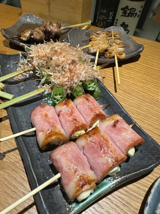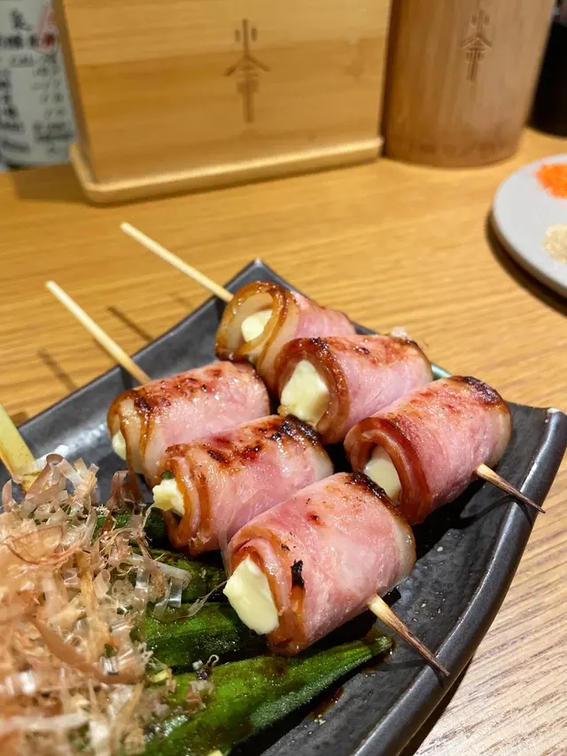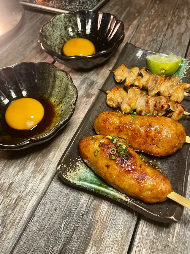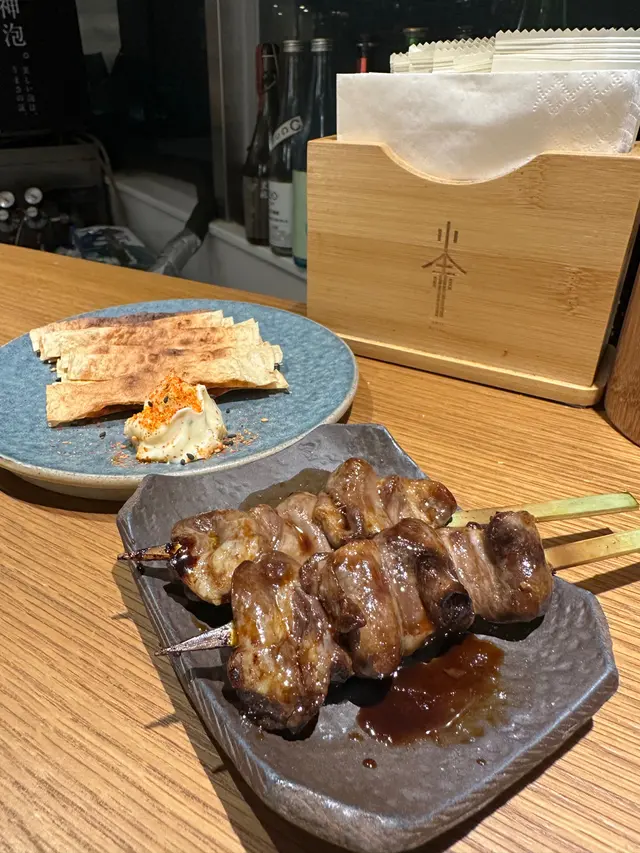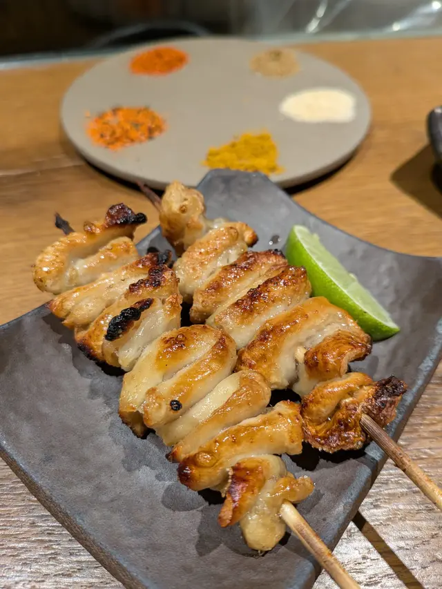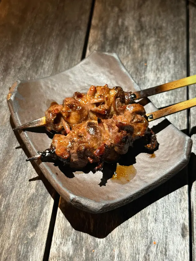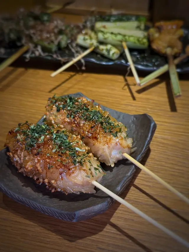 雞頸肉到提燈,每串都有驚喜走進火赤,彷彿置身東京街頭的小酒館,充滿日式居酒屋氛圍。店內以黑色為主調,燈光昏黃,除了 bar 枱,亦設有室外坐位,靜中帶旺,適合三五知己慢慢嘆串燒、飲清酒,談天說地。這晚點了幾款串燒和小食,每款都見心思,味道與火候俱佳:• 糯米雞肉棒:外脆內糯,米香與雞肉融合得宜,配上少少醬汁更惹味,令人一試難忘。• 雞頸肉:少見部位,肉質嫩滑又帶嚼勁,燒得香口,食完即想 encore。• 雞上髀肉:肉質嫩滑,炭香四溢,簡單鹽燒已經好出色,完全唔需要多餘調味。• 雞心:爽口不腥,調味恰到好處,入口有彈性,令人驚喜。• 提燈(雞子):外層微脆,內裡爆漿,口感層次豐富,令人驚艷。• 法國水牛芝士煙肉卷:芝士濃郁邪惡,煙肉鹹香,咬落一刻超滿足,中間夾住紫蘇葉更添清新層次,邪惡中見優雅。• 燒鱈魚乾:外脆內香,微微焦香中帶點甘甜,是送酒一流的小食,愈食愈開胃。• 福岡秋葵:清爽解膩,保留蔬菜原味,配上木魚絲味道更突出,簡單但不平凡。• 蘆筍:燒得剛好,保持脆度,淡淡鹽味提鮮,清新怡人。• 醤油燒飯團:外層焦香,內裡軟糯,醬油味濃郁,有日式街頭風味,簡單卻令人回味。• 抹茶厥餅:作為收尾甜品,煙韌不膩,抹茶香濃而不苦,清新解膩,完美句號。火赤的串燒用料新鮮、火候掌握得好,部分罕見部位如雞頸肉、提燈等更添驚喜。整體體驗令人滿足,無論係味道、氣氛定服務,都令人想再訪。…查看更多
