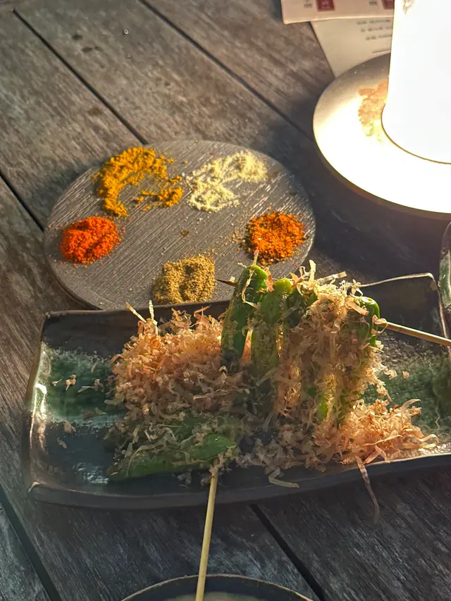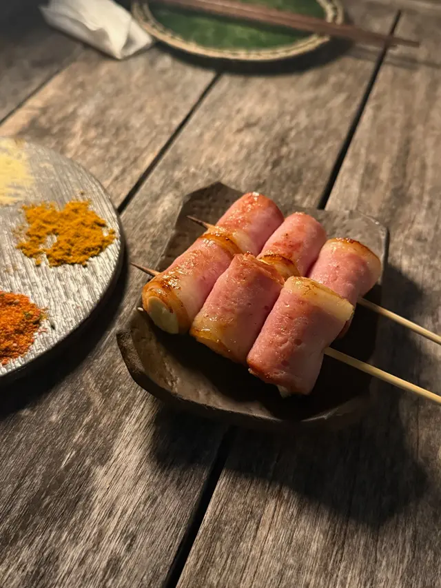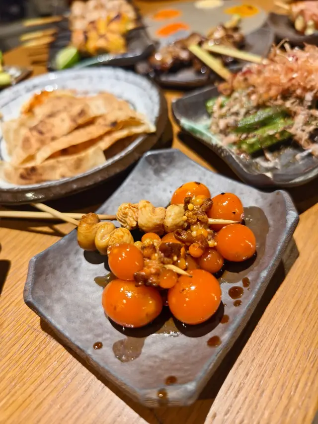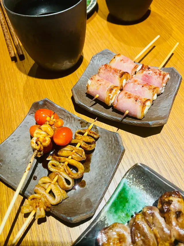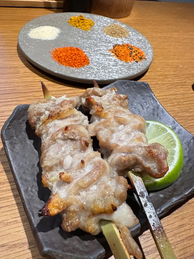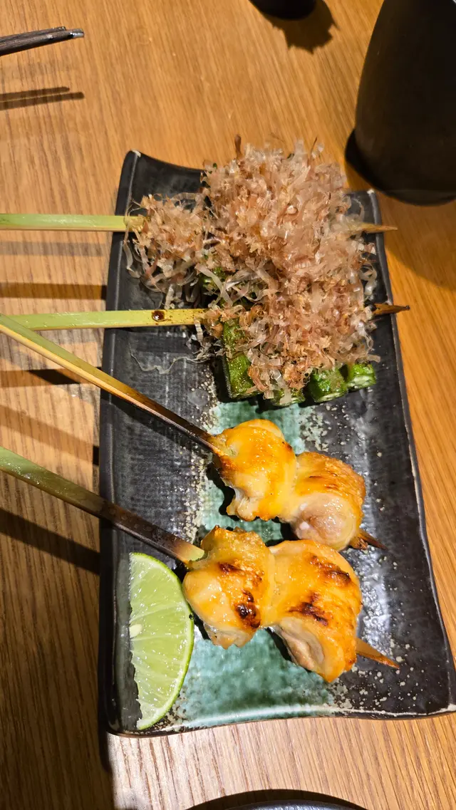 雞頸肉到提燈,每串都有驚喜走進火赤,彷彿置身東京街頭的小酒館,充滿日式居酒屋氛圍。店內以黑色為主調,燈光昏黃,除了 bar 枱,亦設有室外坐位,靜中帶旺,適合三五知己慢慢嘆串燒、飲清酒,談天說地。這晚點了幾款串燒和小食,每款都見心思,味道與火候俱佳:• 糯米雞肉棒:外脆內糯,米香與雞肉融合得宜,配上少少醬汁更惹味,令人一試難忘。• 雞頸肉:少見部位,肉質嫩滑又帶嚼勁,燒得香口,食完即想 encore。• 雞上髀肉:肉質嫩滑,炭香四溢,簡單鹽燒已經好出色,完全唔需要多餘調味。• 雞心:爽口不腥,調味恰到好處,入口有彈性,令人驚喜。• 提燈(雞子):外層微脆,內裡爆漿,口感層次豐富,令人驚艷。• 法國水牛芝士煙肉卷:芝士濃郁邪惡,煙肉鹹香,咬落一刻超滿足,中間夾住紫蘇葉更添清新層次,邪惡中見優雅。• 燒鱈魚乾:外脆內香,微微焦香中帶點甘甜,是送酒一流的小食,愈食愈開胃。• 福岡秋葵:清爽解膩,保留蔬菜原味,配上木魚絲味道更突出,簡單但不平凡。• 蘆筍:燒得剛好,保持脆度,淡淡鹽味提鮮,清新怡人。• 醤油燒飯團:外層焦香,內裡軟糯,醬油味濃郁,有日式街頭風味,簡單卻令人回味。• 抹茶厥餅:作為收尾甜品,煙韌不膩,抹茶香濃而不苦,清新解膩,完美句號。火赤的串燒用料新鮮、火候掌握得好,部分罕見部位如雞頸肉、提燈等更添驚喜。整體體驗令人滿足,無論係味道、氣氛定服務,都令人想再訪。…查看更多