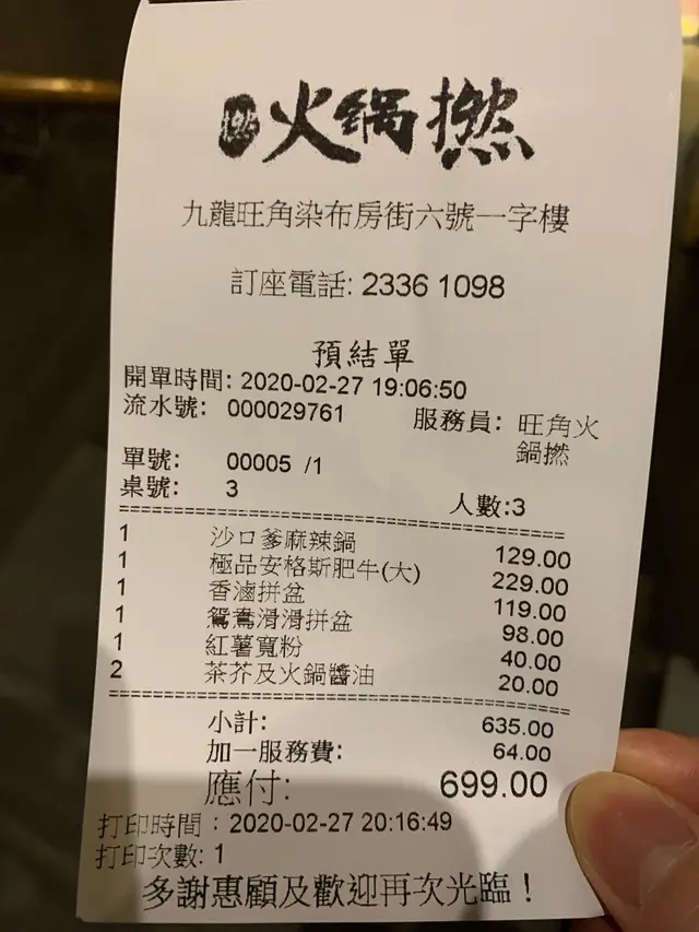 火鍋撚 (染布房街) (旺角) 網址: https://s.openrice.com/QrbS0cAC700 地址: 香港旺角染布房街6號1樓 電話: +852 23361098