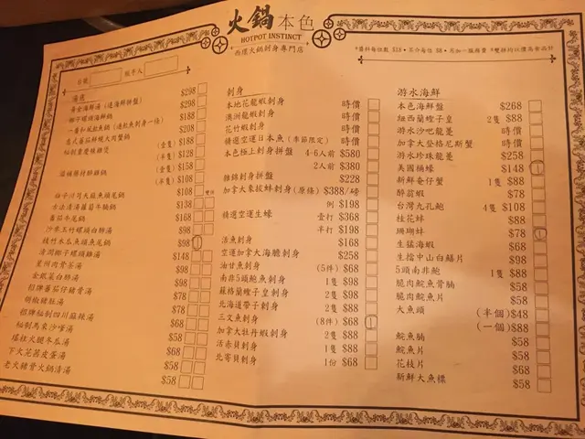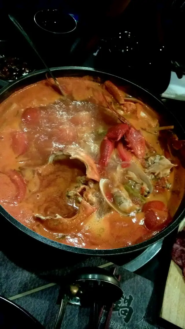 冬天的时候跟朋友聚餐,没有什么是一餐打边炉约不到的。港岛中心区域周五晚上经常很难订位,只要退而求其次跑到坚尼地城这边吃一顿了。这家店的入口有点小,寻着招牌才找到位置。店内面积还是蛮大的,环境不错,座位宽敞,保障了比较舒适的用餐心情。看着菜单点了一些肉,时蔬,毛肚,鱼虾,丸子,午餐肉,主食等。锅底的味道还挺鲜的,但是有点淡,食材还算是新鲜的,几个人随便吃吃聊聊打发时间还是不错的。服务态度还是可以的,但是服务员有点少。总体而言挺好的一家火锅店。…查看更多