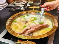 喂!最近真係成日見到好多人拎住《九龍城寨》劇照嚟九龍城打卡📸!講開又講,雖然呢區好多老字號,但今次介紹嘅「火鍋頭」其實係新派代表,同啲老字號拍得住!雖然唔係老字號,但佢哋個豆腐木棉魚燉湯$398真係落足料!原條木棉魚加水果粟米,個湯煲到奶白色,鮮甜到連飲三碗都唔夠喉!老闆仲好細心教你點樣起魚肉配普寧豆醬,體驗感十足!🔥新派湯底推薦:「金華火腿冬瓜盅$298」用上新鮮冬瓜,店員即場切開,金華火腿嘅鹹香滲入湯底,味道平衡得剛剛好!「每日鮮熬魚湯鍋」堅持每日用新鮮魚骨熬製,零味精,飲完成個人都好舒服!🥩肉類主打:「本地手切煽牯牛肉$438」雖然係新店,但對牛肉品質要求極高,油花分布均勻,牛味濃郁得嚟唔會太膩!「西班牙黑毛豬$88」選用優質黑毛豬,肉味香濃,口感嫩滑🦐海鮮每日新鮮到:海鮮拼盤(時價) 虎蝦、鮑魚、蟹都係每日新鮮入貨,保證生猛!🍡手作特色:「手打粒粒墨魚丸$78」真係食到粒粒墨魚肉「梅菜王豬肉丸$78」鹹香惹味「羊肚菌蘆筍帶子餃$78」創意配搭「招牌鮮炸金響鈴$58」即炸上枱🌿清新配料:新鮮淮山$42、皇帝菜$48、唐生菜$38,全部乾淨新鮮!溫馨提示:雖然唔係老字號,但水準絕對拍得住傳統名店!建議早兩日book位,特別係周末好快full!(後記:新店都有舊區人情味,老闆成日同客人吹水,呢種感覺先係最正!)…查看更多