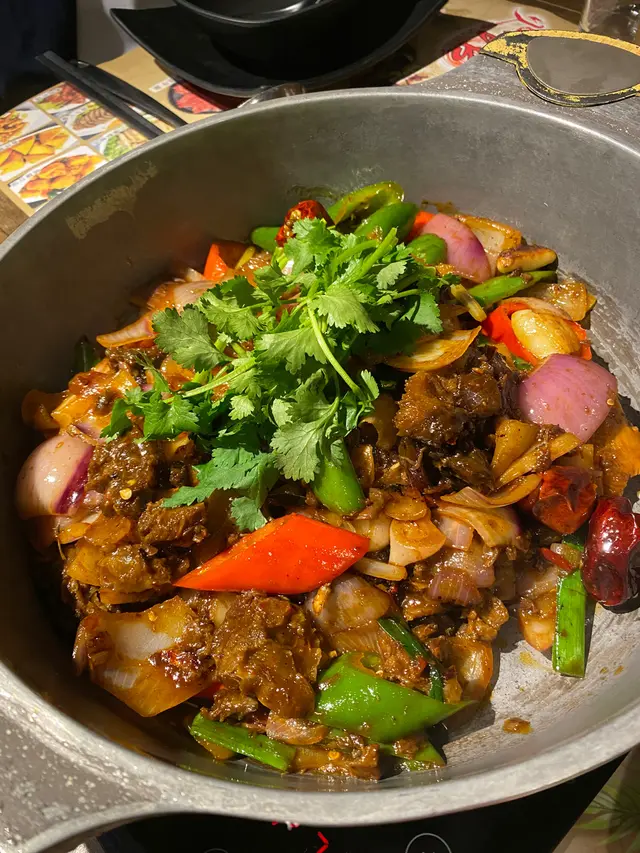 點咗半隻香辣雞煲,雞件份量充足,皮光肉滑,香辣惹味黑毛豬柳條
