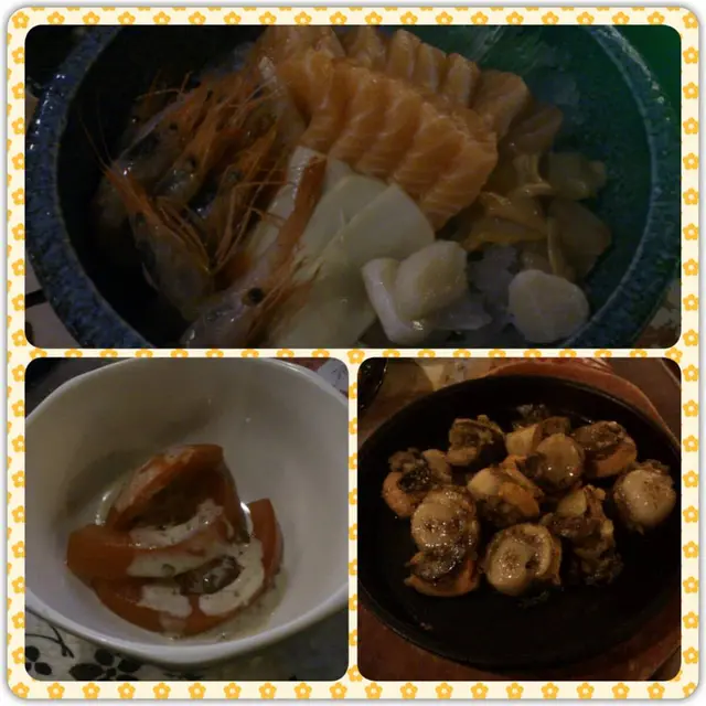 刺身緊係必食啦 叫幾多黎足咁多真係正! 有厚切三文魚 八爪魚 榮螺片 甜蝦 呢幾樣一定要一叫再叫熟食就有雞翼 牛油帶子 牛肉薄燒炸物仲有薯格 帶子 蟹鉗 粒炸蝦丸入面仲有芝士tim都食左一輪野 當然唔好比佢停 繼續叫 有個肥既短頭髮攣毛既女人好大聲咁同我地講食唔哂野係犯法!!!!!!!! 仲話要收50%付加費