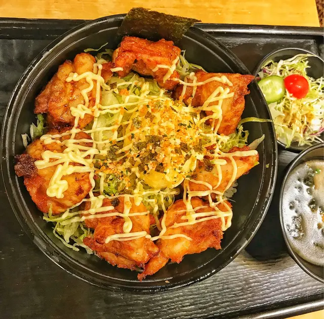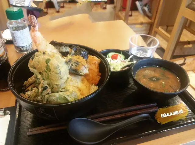 特地來到大埔食lunch 因為就腳既關係就試左呢間炎天丼 撞岩時間未係好多人 所以唔需要等位 鋪頭細細間 位置唔多 我地被安排坐左係吧枱位置 佢地有啲籃仔擺係凳底比人放袋 好貼心☺️我地叫左一個唐揚雞丼 一個海老天丼 炸物既款式都算多 有菜心、茄子、番薯、南瓜仲有海蝦!炸物唔算好粉 但比較油 如果可以再乾身少少會更好而唐揚雞丼非常好味 佢有海量既沙律醬加上啲雞嫩口、又熱 炸得岩岩好!再沈海量既飯素!真係勁好味😋😋😋😋😋最後隨餐附送麵豉湯乙碗 滿足~查看更多