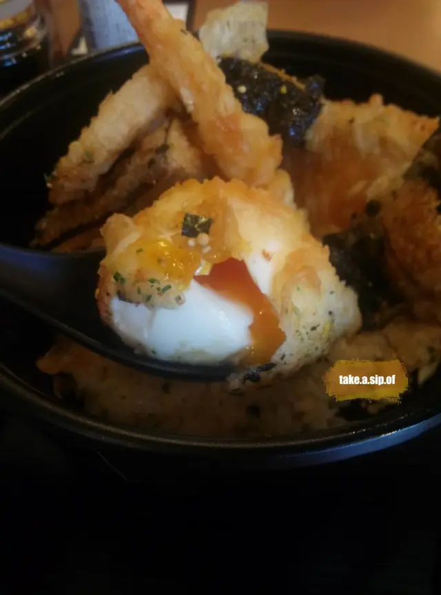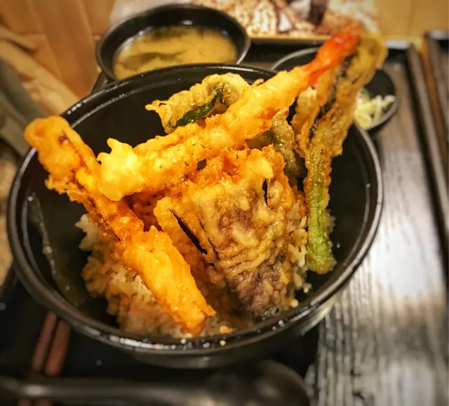 好耐都冇食過日本野啦!喺香港要食高質又平嘅丼飯真係有啲難度,想食高質就要好貴,食得太平又易中伏🙂今日難得搵到一間性價比唔錯的丼飯,即刻推介俾大家👊🏻🔹海膽天丼 $89📍8/10聽講最多人推薦「海膽天丼」,冇理由唔試下🤤呢個飯共有六款炸物:菜心苗、茄子、蓮藕、南瓜、海膽天婦羅和流心蛋;所有食物都係新鮮炸起,食落又熱又脆!主菜「炸紫菜海膽」幾新鮮,一脆一軟,口感豐富,海膽冇腥味,但就唔夠鮮甜🤔其餘的天婦羅炸得剛剛好,炸粉不厚;菜心苗好似薯片般脆口,冇草青和苦澀味,蓮藕爽口,南瓜清甜,整體不錯!🔶海鮮天丼 $76📍9/10論價錢和食物配搭,呢個海鮮天丼性價比更高!配料有魷魚、蟹肉棒和虎蝦,但就平左十幾蚊,足以填補海膽嘅空位呀🤣三樣炸物炸到好鬆脆,虎蝦仲有啲彈牙,食落不覺太油膩~今餐最期待就係炸流心蛋🙊因為要兼顧脆皮,同半生熟嘅效果真係幾難~估唔到呢間又做得唔錯,外脆內軟,又流到蛋漿🤤按喜好淋上秘製天汁和日本飯素,撈一撈,おいしい!查看更多