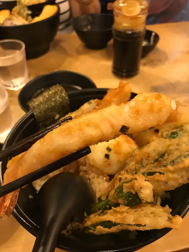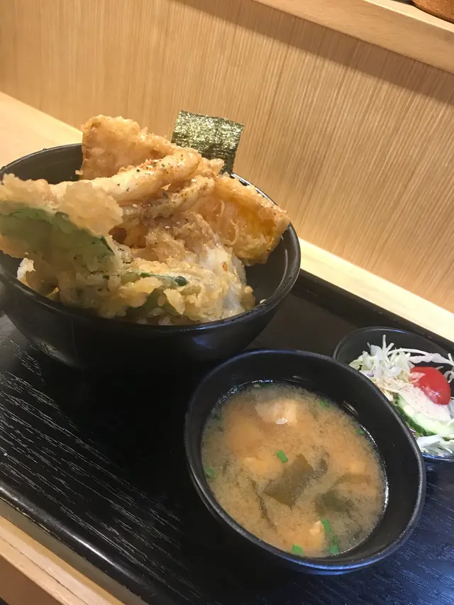 呢間一直bookmark好耐,終於岩timing去食,星期六晚7點前到,咁岩有2個位唔駛等。出名食天婦羅丼,而且價錢幾親民,無加一。海老天丼$63: 天婦羅不厚粉,只係化左好薄既底妝,除了彈牙蝦之外,仲有甜南瓜、蓮藕,最特別是有菜心苗,咬落有種脆口感覺好有趣,再加埋隻流心蛋撈飯,勁正,D飯都好味。海鮮天婦羅加冷烏冬$63: 喜歡幼烏冬,但個汁有點淡,而天婦羅有甲紋魷魚(好嫩同彈牙)、蟹肉捧、蝦、菜心苗、椰菜花(好特別又好食)。整體質素好高,可以再再再encore~旺角都有分店架!查看更多