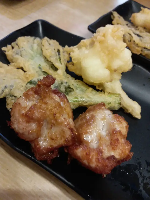 是日午餐黎到大埔炎天丼~想食好味既天婦羅,知道炎天丼既天婦羅出名好食~所以就黎朝下聖!下晝食飯時間12:30黎到竟然冇人等位,仲好吉下~入到去坐到大概一點鬆d就開始多人~叫左主要2款午餐,包括海膽天丼同海鮮天丼,另外叫左小食和牛粒不過唔記得左影和牛粒好正!炸到脆口之餘咬落去有好多汁!海膽天丼個海膽炸完都食到有鮮味至終其他炸物,菜心非常之咁令人驚喜海鮮丼隻虎蝦啖啖肉!兩個餐都有流心蛋!吉穿佢撈飯就非常之正~食哂成碗之後飽到夜晚都唔駛食~呢間d天婦羅食完都唔覺得漏~確係唔錯!唯一要挑剔係食完出到黎個身好大陣炸物味查看更多