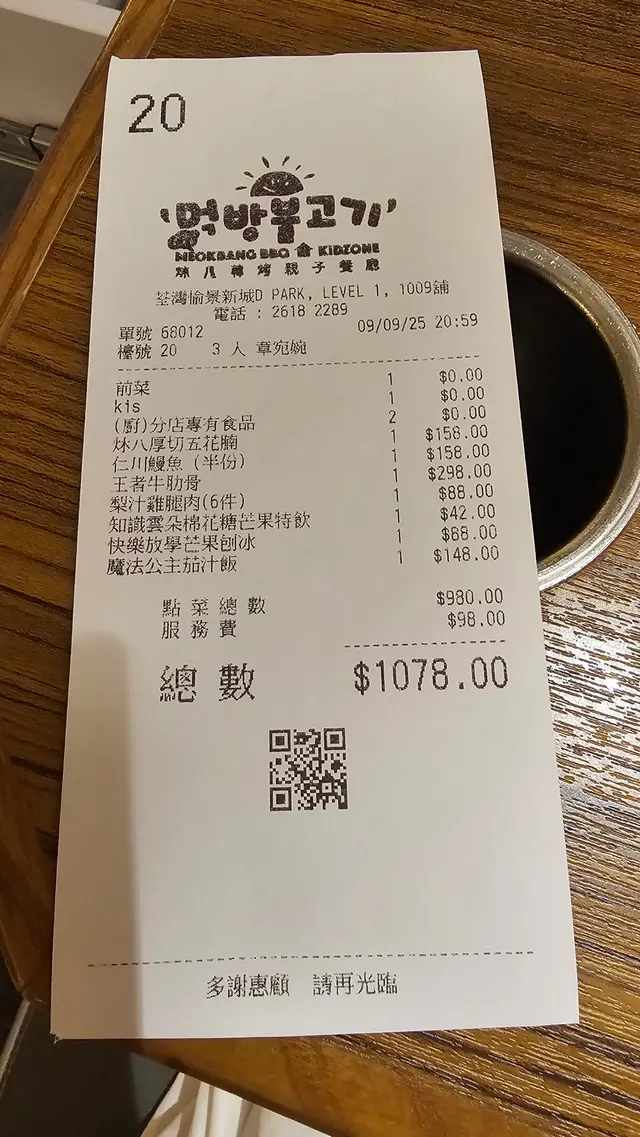 媽媽想食燒烤,小朋友又想有得玩?嚟「炑八韓烤親子餐廳」就啱哂啦~呢度係一間適合一家大細嘅韓燒餐廳,大人韓燒,小朋友可以去兒童玩樂區,各自各精彩!我最喜歡佢嘅有邊爐泡菜蛋同芝士粟米,仲要無限添,又香又好味! 🌟 厚切五花腩肥瘦均勻,慢慢烤到外皮香,再用生菜包住食,好有韓式風味!🌟 鰻魚肉質肥美,燒到微微焦香,加埋鰻魚汁一齊烤,最後夾紫菜一齊食,好滿足!🌟 王者牛肋骨超大條牛肋骨,肉質嫩嫩的,醃得夠入味,燒完之後好juicy, 必點之選!🌟 梨汁雞腿肉用上清甜梨汁醃製,雞肉嫩滑,食落帶有淡淡果香,小朋友好喜歡!佢哋呢度仲有設有幾款兒童餐,唔怕小朋友咁唔啱食!我哋就叫左學霸小獅子螺絲粉,獅子🦁造型,有芝士茄汁螺絲粉、牛肉、雞蛋、西蘭花,好有營養又飽肚!🌟 知識雲朵棉花糖芒果特飲 上面用左彩虹棉花糖雲朵做裝飾,下面係清新芒果特飲,甜而不膩!🌟 快樂放學芒果刨冰大量芒果肉,下面係刨冰+淡奶,再淋上芒果醬,夏天食真係消暑!小朋友食飽就可以去餐廳嘅玩樂區玩,有「波波池」同「韓系童心空間」,大人係出面食嘢,小朋友放心係入面玩,另外仲有「免費工作坊」同「親子韓服體驗」,一家人都可以輕鬆享受!…查看更多