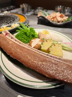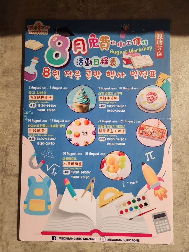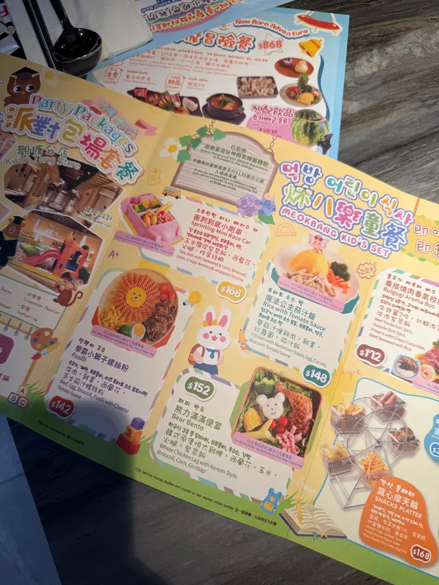 炑八既韓文發音意思指吃貨,係當地人既俚語,佢地希望食客可以享受地道韓式美食🇰🇷同埋愉快既時光,亦都好貼心咁整左好多設施比小朋友挽,滑梯🛝、波波池🫧一應俱全,亦有益智既找不同同迷宮遊戲可以贏獎品,連餐牌同食物都同校園元素有關,幾有心思~ 野食方面都好豐富,外表同味道都一樣兼顧到👍🏻 如果店員有時間仲可以幫你燒🔥😌(5 😍 係滿分,🤩係半分)王者牛肋骨 🐮🍖 - $298 (好味指數:😍😍😍😍🤩)果然係王者king size, 仲大過個燒盤😂 佢地用左韓國梨蓉🇰🇷🍐、洋蔥🧅、蒜蓉🧄、醬油等等去醃製,醃得夠耐夠晒入味,牛味🐮濃郁,味道清新香甜又惹味,肉質軟嫩鬆化,有油香又juicy幾正🤤炑八厚切五花腩 🐷 - $158 (好味指數:😍😍😍😍🤩)燒好🔥之後金黃色有光澤🤩 表皮香脆,肉質彈牙之餘嫩滑,肥瘦相間,有焦香同油香,但唔會覺得油膩,肉味香濃~ 想再refreshing啲可以包埋爽脆既生菜🥬食~梨汁雞腿肉 (6件) 🍐🍗 - $88 (好味指數:😍😍😍😍)一樣有清香既梨味🍐,而且醃過之後肉質更加細緻嫩滑,清爽唔油膩,雞味🐥幾重,而且表皮燒過🔥有油香幾唔錯👍🏻乘搭燒肉香氣校巴 🔥🐮🚌 - $172 (好味指數:😍😍😍😍)配合親子餐廳既主題,兒童餐都靚啲,幾貼題咁用左校巴🚌去裝🤩 牛脊翼🐮鮮嫩多汁,有彈性~ 外群肉🐮肉質細嫩,牛味🐮濃郁~ 大蝦翠肉瓜🍤🥒清爽彈牙,亦有香甜軟糯既南瓜🎃、芳香馥郁既冬菇🍄🟫、酸甜多汁既菠蘿🍍,同時配左牛肉紫菜飯🐮🍚,惹味香口~仁川鰻魚 (半份) - $158 (好味指數:😍😍😍🤩)份量幾多,燒完🔥外皮酥脆,亦有啲咬口,膠質豐富,肉質軟嫩多汁,亦可以點啲香甜既醬油一齊食,不過要小心骨🦴,同埋有少少腥知識雲朵棉花糖芒果特飲 ☁️🥭🍹- $42 (好味指數:😍😍😍😍)上面有五彩繽紛既彩虹棉花糖🌈好靚🤩 有馥郁誘人既芒果🥭香味,酸酸甜甜,清爽開胃,口感幼滑,又有奶香🥛幾好飲😋快樂放學芒果刨冰 🥭🍧 - $88 (好味指數:😍😍😍😍🤩)第一次見刨冰🍧有咁多芒果🥭😍 肉質軟嫩,香氣馥郁誘人,酸酸甜甜~ 上面有一球雲呢拿雪糕🍨,味道清新,口感軟滑~ 下面既刨冰🍧奶味🥛香濃,細嫩綿密~ 食完燒肉🔥🐮可以降溫幾正🤤好味指數:😍😍😍😍🤩推介指數:😍😍😍😍🤩…查看更多