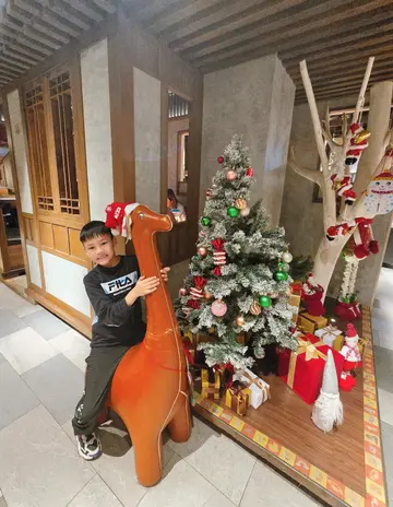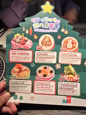 提早和朋友跟女兒一起食聖誕大餐,我地揀左一間有波波池俾小朋友玩的韓燒餐廳,推開大門,首先映入眼簾的是滿滿的韓國風格裝潢,餐廳特別設計了一間間獨立用餐房,不但保有私隱,讓人彷彿置身首爾小巷中 。最吸引小朋友的,是餐廳中央的一個巨大的波波池。五彩繽紛的塑膠球堆成一片海洋,小女兒一看到就興奮得跳了進去,我和朋友一邊期待今晚的燒肉饗宴。店員先上了一堆前菜,除左沙律,其他都是可以食完再添,超超超愛泡菜,甜甜辣辣,十分開胃聖誕村燒肉歡樂派對牛胸腹聖誕樹牛胸腹肉片堆成小樹,油脂在炭火上吱吱作響。每一片入口,肉香濃郁,油花細膩,咀嚼間融化,彷彿冬夜裡的一團暖意。壽喜燒牛前胸牛肉浸泡在壽喜燒的醬汁中,燒烤後表面帶著微微焦香。跟住牛肉包住生蛋汁同白飯,濃郁甘甜,接著牛肉的肉汁緩緩流出,層次豐富,讓人欲罷不能。蔥鹽牛舌牛舌薄切,灑上蔥鹽,燒烤後外脆內嫩。蔥香清新,鹽味提鮮,牛舌的彈牙與蔥鹽的清爽在口中交織,令人一吃難忘。荔枝牛肉串串新奇的組合,牛肉的濃郁與荔枝的果甜碰撞。入口先是果香,咬下去牛肉的肉香隨即湧現,甜鹹交錯,像是節日裡的驚喜禮物。豬頸肉拼外群肉豬頸肉彈牙多汁,外群肉帶著獨特的嚼勁,厚切五花肉厚切五花肉則油脂豐盈,烤得微焦,肥瘦相間,包著生業。減去了肥膩感,香氣撲鼻,滿足感十足。主食- 薯仔煎餅外酥內軟,馬鈴薯的香甜和奶油氣息交織,簡單卻讓人停不下來。甜品聖誕棉花糖配威化餅先將棉花糖燒軟,夾著威化餅,像是漢堡包甜版,入口即化,甜甜的感覺滿足了甜點的胃 。兒童餐夢幻聖誕樹意粉比較特別嘅事開心果醬意粉,拼成了聖誕樹的模樣,加上蘑菇,蟹籽,蝦仁,粟米粒,紅蘿蔔與意粉完美融合,孩子吃得津津有味。薑橙梳打,柑橘鮮橙果茶兩杯飲品解了燒肉的膩又消暑。微辛薑味配上橙子的清新,喚醒味蕾。酸甜適中,果香四溢 。最後還可以扭蛋,簡直是小朋友的天堂 。…查看更多
