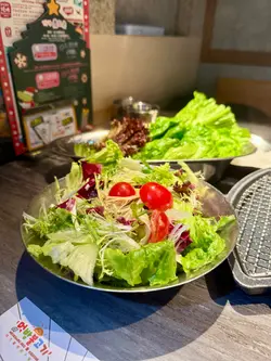 在觀塘的炑八,是一間親子的韓烤餐廳,大人細路都能妥善招呼,令人樂不思蜀!作為一間親子餐廳,這個波波池遊樂場是重點,是小朋友放電的好地方 👍👍👍👍聖誕村燒肉歡樂派對 $868 及叮叮噹噹歡度聖誕燒肉餐 $172,大人細路都招呼得妥妥貼貼。套餐包括沙律一份,烤肉餐中的一份清新 🌿套餐中最矚目的牛胸腹聖誕樹🎄,除了牛胸腹外,還有蔥鹽牛舌、荔枝牛肉串串、豬頸肉拼外群肉、厚切五花肉。壽喜燒牛前胸,最愛的一款牛肉食法,但愛壽喜燒的甜味燒汁,加上嫩滑牛肉,一試難忘。蔥鹽牛舌、荔枝牛肉串串、豬頸肉拼外群肉、厚切五花肉,肉質肥美;烤起來,引得火光紅紅,氣氛滿瀉。薯仔煎餅替代了一貫的米飯,薯仔煎得香口,簡單好味道。聖誕棉花糖配威化餅,連份甜品也滿有聖誕氣氛,還算不錯。叮叮噹噹歡度聖誕燒肉餐 $172,有生菜聖誕樹🎄、牛胸腹肉、豬頸肉、雞腿肉、蕃茄、冬菇、紅蘿蔔,還有紫菜牛肉飯;作為兒童餐來說,相當豐富。聖誕精靈的魔法果汁泡泡 $42,泡泡內有新鮮水果,味道甜美,糖分足夠讓冰塊溶解也不會變淡,值得一讚。…查看更多