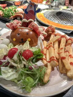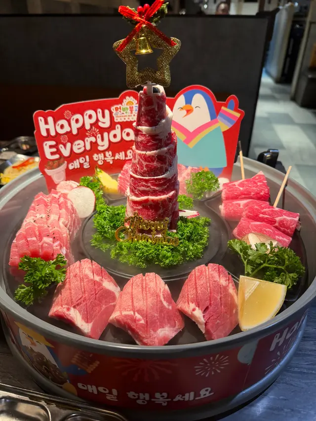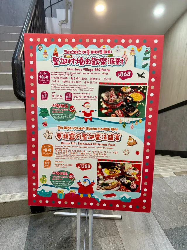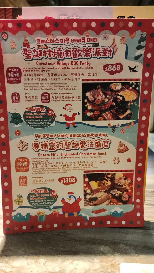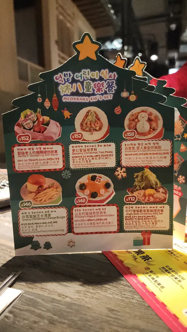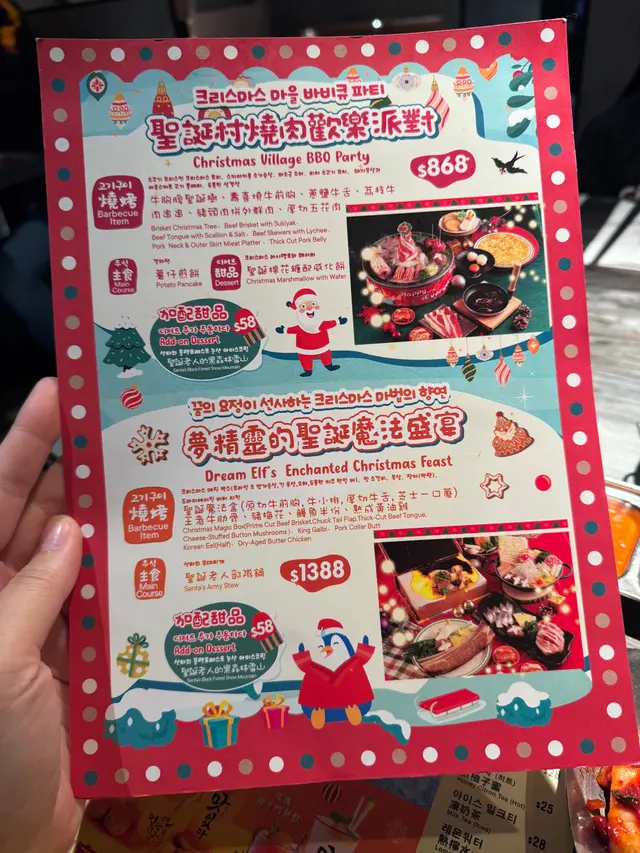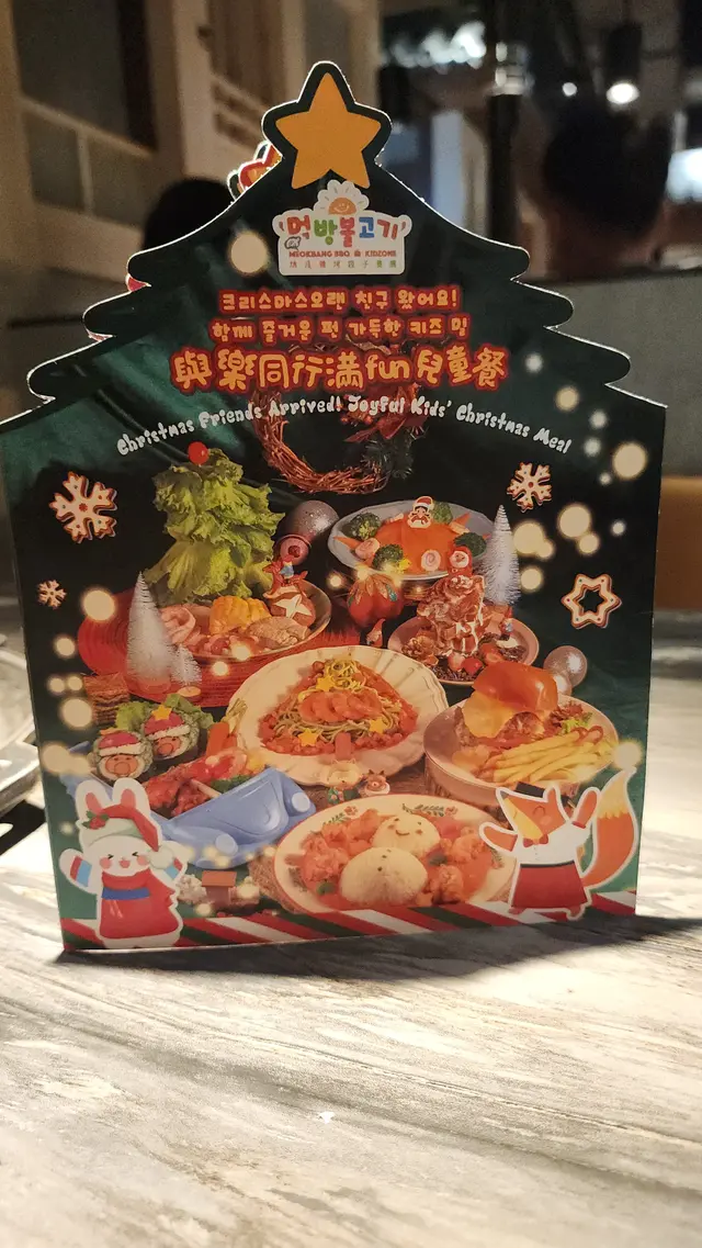 在觀塘的炑八,是一間親子的韓烤餐廳,大人細路都能妥善招呼,令人樂不思蜀!作為一間親子餐廳,這個波波池遊樂場是重點,是小朋友放電的好地方 👍👍👍👍聖誕村燒肉歡樂派對 $868 及叮叮噹噹歡度聖誕燒肉餐 $172,大人細路都招呼得妥妥貼貼。套餐包括沙律一份,烤肉餐中的一份清新 🌿套餐中最矚目的牛胸腹聖誕樹🎄,除了牛胸腹外,還有蔥鹽牛舌、荔枝牛肉串串、豬頸肉拼外群肉、厚切五花肉。壽喜燒牛前胸,最愛的一款牛肉食法,但愛壽喜燒的甜味燒汁,加上嫩滑牛肉,一試難忘。蔥鹽牛舌、荔枝牛肉串串、豬頸肉拼外群肉、厚切五花肉,肉質肥美;烤起來,引得火光紅紅,氣氛滿瀉。薯仔煎餅替代了一貫的米飯,薯仔煎得香口,簡單好味道。聖誕棉花糖配威化餅,連份甜品也滿有聖誕氣氛,還算不錯。叮叮噹噹歡度聖誕燒肉餐 $172,有生菜聖誕樹🎄、牛胸腹肉、豬頸肉、雞腿肉、蕃茄、冬菇、紅蘿蔔,還有紫菜牛肉飯;作為兒童餐來說,相當豐富。聖誕精靈的魔法果汁泡泡 $42,泡泡內有新鮮水果,味道甜美,糖分足夠讓冰塊溶解也不會變淡,值得一讚。…查看更多
