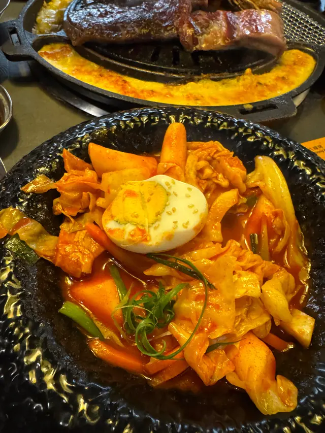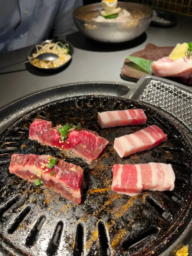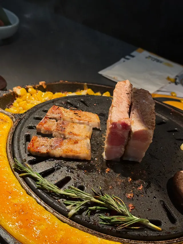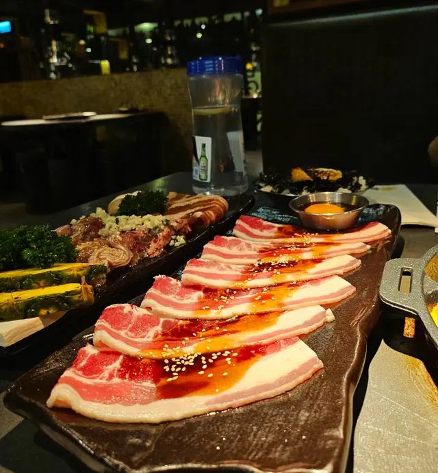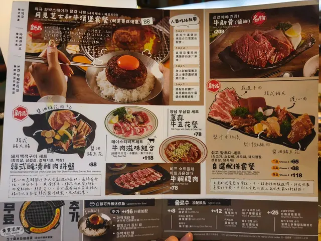 好耐好耐冇食過炑八啦😞好掛住個個任食既泡菜蛋同埋芝士粟米🌽👍🏻當然唔少得有得任添既海帶芽菜、泡菜、薯蓉同埋生菜啦🥰大食既我緊係食唔停口啦😂今次就兩個人食,咁就叫左風味牛肉拼盤(牛前胸肉2件、牛小排3件、外裙肉4件、厚牛舌2件),肉味濃,肉質嫩滑。另外仲叫左厚切五花腩,煎到佢燶燶地迫哂啲油花出黎😗脆卜卜就最好食啦☺️最後就叫左辣炒芝士年糕拉麵,食開10小辣既我黎講呢,係有少少辣嘅,如果有野飲先頂到😂總括而言,咁耐冇食,而家食反都冇禮物我失望,都食到好飽先走🤭👍🏻期待下一次黎再試吓啲新野😙舔舔脷指數👉🏻6.5😋/10😋滿分 可以一試😋…查看更多