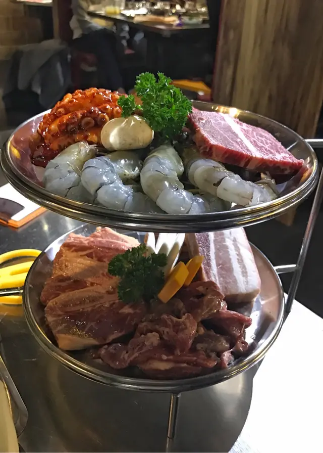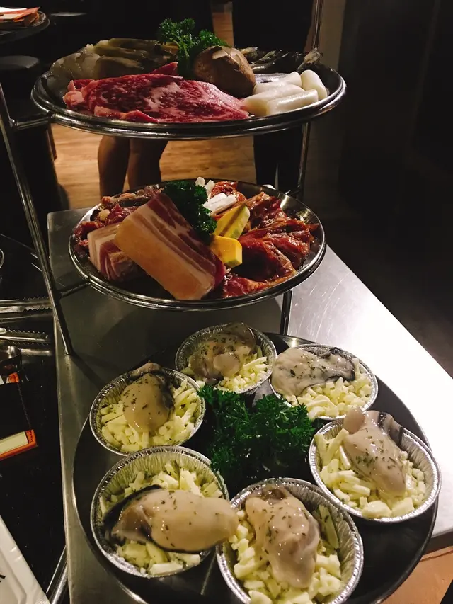 自吃過後就對其燒肉念念不忘,有空定必再約飯腳來烤烤點了個韓牛套餐HKD785份量豐富,足夠3至4人享用包括韓牛200g,豬排骨,豬腩肉,多春魚,大蝦,炑八護心肉,年糕,海鮮豆腐湯,芝士生蠔各款肉都好新鮮而且味道十足生蠔加入芝士更香更濃,蠔鮮甜肥美大蝦則新鮮,質感夠彈性,有口感,鮮甜,肉質很不錯,足見夠新鮮烤肉時味道香氣四溢濃烈,韓牛牛味濃烈,入口感覺油脂滿滿又適中矜貴的200g真不太滿足,確實太美味了再來食芝士生蠔加厚切豬腩肉肥肉中夾著瘦肉,口感豐膄,入口甘香而海鮮豆腐湯更是十分惹味辣勁十足,配料豐富,有海鮮,豆腐,脆肉瓜,令整個湯口感甚岀,味道香濃,好飲整體而言,以這個食物質素來說,定價十分合理,可說得上抵食,如果喜歡韓式甜品,不妨另外加HKD20配特色冰沫,美觀又令人賞心悅目,很不錯呢,值得再來!…查看更多