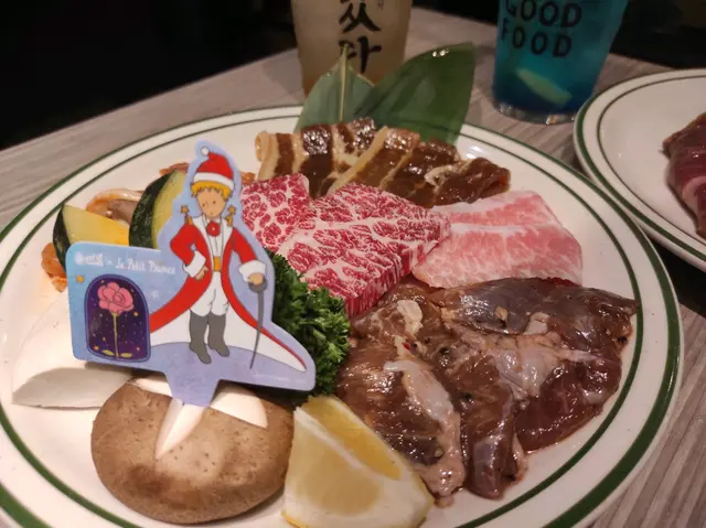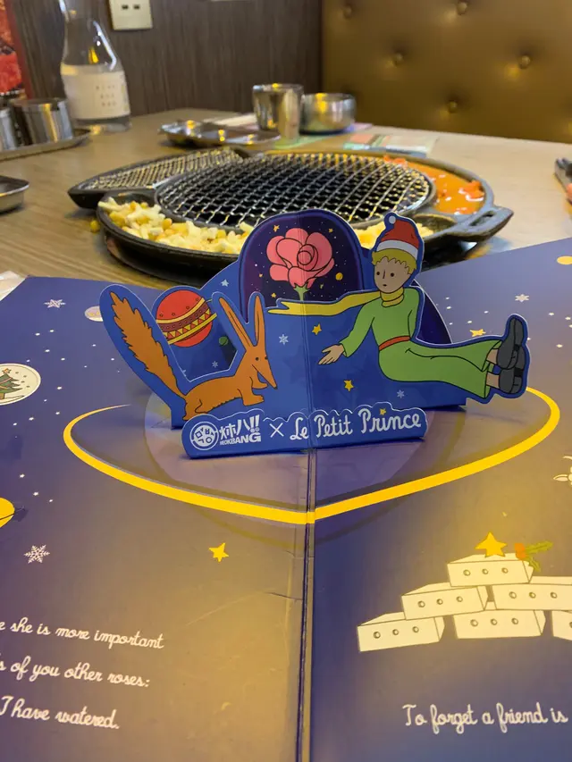同男友喺荃新天地睇完戲,聞到好香韓燒味就被吸引咗過去啦。 餐廳門口位仲有小王子場景可以影相打卡📸。小王子🤴粉絲絕對唔可以錯過。 咁啱我哋被安排坐喺卡位,牆身仲有位可以叉電添,相當貼心嘅安排。🥰 一坐低,店員先上前菜小碟,有泡菜、芽菜、辣青瓜🥒、生菜、沙律🥗。之後仲幫我哋喺個爐邊加上芝士🧀同蛋漿,好似平時去韓國食韓燒都係咁,仲可以無限量添加。亦都可以揀加埋啲泡菜落蛋漿兩溝,又或者可以淨蛋漿都得。啲蛋整出嚟好香,好好味。 個menu 好靚呀😍,成張聖誕卡咁,我哋揀咗個小王子獨一無二套餐,有特級牛肋骨、貝身肉、韓式秘製醬油豬五花、黑毛豬背肉、梨汁雞肉、炑八特製護心肉、大紅蝦。🦐 個特級牛肋骨超長呀,肉質鮮嫩。其他每款肉都有其獨特味道,最欣賞就係炑八特製護心肉,牛味濃郁,肉質超滑。如果唔想就咁食肉,仲可以包生菜食,有另一食法,而且無咁熱氣。 可以揀迷你泡菜煎餅或者飲品,我哋揀咗飲品荔枝梳打同夏恩菠蘿梳打🍹。兩杯都好好飲,又可以解渴,正呀! 惠顧任何一個小王子套餐加$98就可以限量換購小王子座檯無線充電器。…查看更多