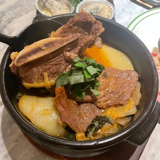 炑八韓式專門店的韓式牛肋骨煲配白飯好入味 🍖 湯底濃郁香甜 ❤️ 牛骨肉質好軟、軟嫩入味 🥩 配上吸滿湯汁的紅蘿蔔和白蘿蔔 🥬 唔使等位之餘裡面有安靜又有私隱度~ 餐廳環境充滿韓式風格 🇰🇷 服務人員態度親切 😊 會主動協助調節火候同加韓式配菜 🔥而且仲有雞扒蛋包飯 🍳 滑蛋、多汁、胡麻醬沙律搭配 🥗 🍚 可額外追加配料 ➕ 店內另有提供多款韓式燒烤選擇 🍢 好抵食而且性價比 👍🏽😊📍 炑八韓式專門店 | 青衣青敬路33號青衣城1樓119B號舖炑八韓烤…查看更多