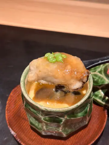 一向鍾意食廚師發辦,今次試下更講究啲嘅「旬」料理,以時令食材為主軸,唔同季節有唔同驚喜。每一道菜都由師傅即場處理,睇住佢慢慢切魚、擺盤,視覺味覺雙重享受。餐廳裝潢走日式簡約風,木系設計配柔和燈光,氣氛寧靜舒服。全店只有十幾個吧枱位,可以近距離欣賞師傅手藝。🔸先付 - 海膽魷魚🦑:口感爽滑,配上海膽清香鮮甜,非常開胃。🔸茶碗蒸🥚:蛋身滑溜,加埋元貝、香菇等,味道清淡中帶鮮,口感幾有層次 🔸季節刺身三品🍣:刺身賣相非常精緻,視覺同味覺雙重享受。 白鮭魚肉質細緻幼滑,味道清甜,平日比較少機會食到。北海道秋刀魚,脂香滲出,配薑醋豉油突出到濃郁嘅魚味。北海道赤貝加柚子皮點綴,食落鮮甜清香。 🔸蟹+蝦肉蒸醬豆腐🦀:我唔食牛,餐廳特別安排左呢款料理比我,蟹蝦鮮甜之餘,師傅刀工了得,豆腐被切成條狀,賣相非常出眾。 🔸天婦羅二品🍤:穴子🐟炸得外脆內嫩,配咖哩鹽味道突出;來自岩手縣嘅舞茸菇🍄香脆且菇香濃厚。 🔸鵝肝飯🍚:鵝肝香滑濃郁,飯粒吸收油香,味道豐富。 🔸麵豉湯🍲:味噌唔會過咸,清而不淡,味道岩岩好。 🔸甜品 - Cookies & Cream 雪糕🍨:雪糕質地柔滑,甜度適中,作為尾聲非常合適。…查看更多