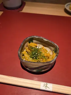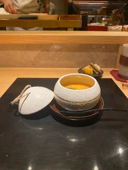 一向鍾意食廚師發辦,今次試下更講究啲嘅「旬」料理,以時令食材為主軸,唔同季節有唔同驚喜。每一道菜都由師傅即場處理,睇住佢慢慢切魚、擺盤,視覺味覺雙重享受。餐廳裝潢走日式簡約風,木系設計配柔和燈光,氣氛寧靜舒服。全店只有十幾個吧枱位,可以近距離欣賞師傅手藝。🔸先付 - 海膽魷魚🦑:口感爽滑,配上海膽清香鮮甜,非常開胃。🔸茶碗蒸🥚:蛋身滑溜,加埋元貝、香菇等,味道清淡中帶鮮,口感幾有層次 🔸季節刺身三品🍣:刺身賣相非常精緻,視覺同味覺雙重享受。 白鮭魚肉質細緻幼滑,味道清甜,平日比較少機會食到。北海道秋刀魚,脂香滲出,配薑醋豉油突出到濃郁嘅魚味。北海道赤貝加柚子皮點綴,食落鮮甜清香。 🔸蟹+蝦肉蒸醬豆腐🦀:我唔食牛,餐廳特別安排左呢款料理比我,蟹蝦鮮甜之餘,師傅刀工了得,豆腐被切成條狀,賣相非常出眾。 🔸天婦羅二品🍤:穴子🐟炸得外脆內嫩,配咖哩鹽味道突出;來自岩手縣嘅舞茸菇🍄香脆且菇香濃厚。 🔸鵝肝飯🍚:鵝肝香滑濃郁,飯粒吸收油香,味道豐富。 🔸麵豉湯🍲:味噌唔會過咸,清而不淡,味道岩岩好。 🔸甜品 - Cookies & Cream 雪糕🍨:雪糕質地柔滑,甜度適中,作為尾聲非常合適。…查看更多