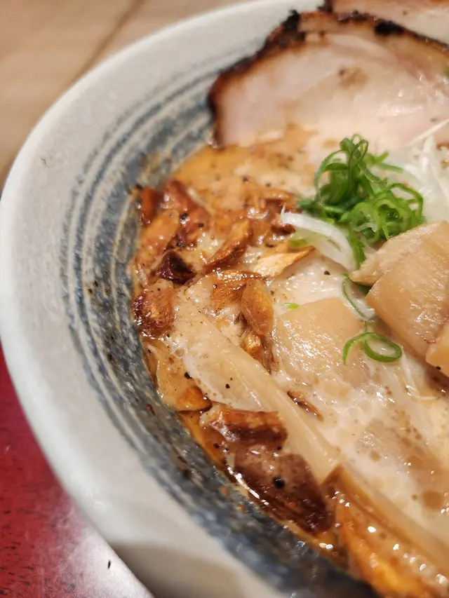 《炙・宴》火炙沖繩琉香豚豬骨🍖湯拉麵🍜📍鑽石山龍蟠街3號荷里活廣場1樓131-133號舖雖然呢間店專做丼飯,都有唔少分店,咁啱經過又未試過,而見到佢人気 No.3 嘅產品係拉麵,試一試啦。《火炙沖繩琉香豚豬骨🍖湯拉麵🍜》香味 (4/5)碗麵一上枱,就聞到濃濃嘅蒜香味,隨之而來就係蔥同豚骨味,非常好聞,第一印象好左先。湯 (3.5/5)碗邊嘅左側見到有唔少炸蒜,同蒜油,香味係以蒜味主導冇錯,啖湯飲落蒜嘅身位又冇聞落咁重,豚骨嘅鹹香味同蒜味不相伯仲。豚骨味夠濃,不過少少唔啱口味嘅係,佢應該落左忌廉或花奶之類去加添左份奶香味,我就麻麻地。而蒜油可能重手左d,令到個湯嘅油膩感偏高,少扣分。麵條 (3/5)豚骨湯拉麵,一般配置都會配細直麵,低加水,偏硬會更普遍。不過呢款麵有d顛覆左呢個概念。麵雖然都係細直麵,但似係中至高加水,而比較腍身,同平時响一蘭食到嘅博多拉麵標準配置差頗遠,有d似屯門道配雞鹽清湯款麵。麵味幾夠,面對濃濃嘅蒜爆奶香豚骨湯都冇話蓋過晒,我覺得都算幾夾,不過可能先入為主,我未係太習慣呢個配搭。配料 (4.5/5)豬叉燒係一大亮點。Menu上有提呢款叫”琉香豚”,個名有d比佢拋窒左,所以食嘅時候警介心頗重,食落點知真係有料到。呢款肉似豬里肌,係豬扒常用到嘅部位。因為比較瘦,脂肪唔多,肉質一定冇豬肩肉豬五花d咁腍,口感比較扎實。不過因為邊邊位有火炙過,而調味有用心思,食到生薑味,而肉味夠晒鮮甜,帶些點兒微微酸。呢款叉燒我會比滿分,可能佢調味特別之餘,又對到我口味,我鍾意偏瘦。溏心蛋,稍稍少扣分。唔係因為基本功問題,只係响個咁濃味嘅湯,麵,同豬叉燒底下,呢款蛋調味唔太夠,太清淡左d,而蛋香亦不足。另外唔知係咪午巿先有,免費送左碗沙律🥗。蔬菜嘅新鮮程度,調味,都係做得幾好。雖然我認為呢款麵係夠晒香濃,但唔代表佢太鹹或太甜,反而鹹甜度係剛好,我不經不覺食下食下就食鬼晒,完全冇話大鹹想溝清湯嘅想法。最後當然係完食啦!整體 - 值得推薦 👍👍👍👍呢碗麵比到我最大記憶點係來自塊豬叉燒,我一離開間鋪已經諗緊幾時返頭食,確係令人口味。另外佢嘅腍身中高加水麵亦記一功,而蒜爆白湯亦比到我強烈滿足感。提左咁多好野,係咪冇野彈又唔係,上菜速度真點慢,冇刻意計時但由落單到上菜大概都有15分鐘⏰, ,而當時鋪入面並唔多人。…查看更多