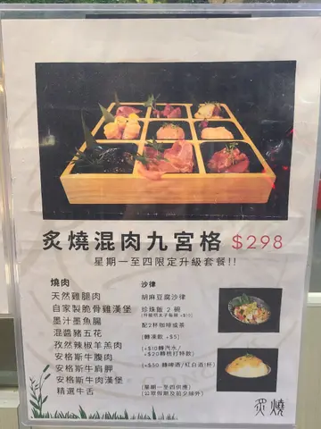 有一日,同月友黎到深水埗炙燒餐廳食飯,入去坐低之後,店員好有禮貌問食咩,我地即刻點左《K餐》同《J餐》,環境都好舒適同乾淨,同嫲其實有好多餐廳都無具備《禮貌》二字,依家舖就吾同啦,等餐方便吾係等得好內,等左5-8分鐘,都可以。 餐黎到,《K餐》嘅雙層煙肉芝士漢堡配薯條,份量十足,味道方便都十分有味道,同嫲薯條要熱食,不可以灘凍食,《J餐》嘅西班牙豬扒辣肉腸,豬扒切起上黎吾煙韌,有咬口,辣肉腸雖然辣,但可以接受,豬扒同辣肉腸嘅味道方便都可以。如果下次食,我都會介紹人黎來食。…查看更多
