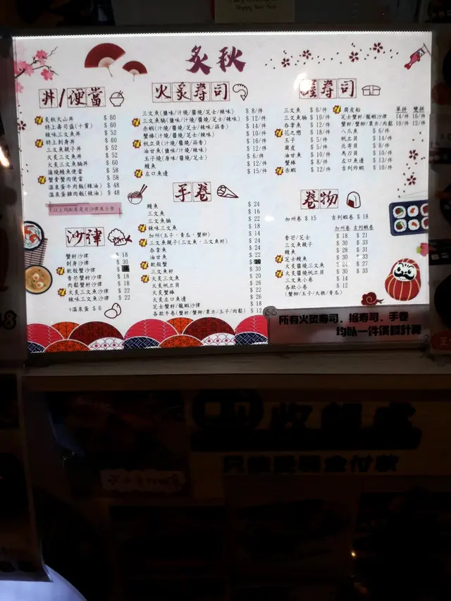 該店的名字很有特色他們提供了一個名為「火灸4味」的優惠,原價為50元,現在優惠價格為40元/4件。由於價格的原因,我理解壽司和刺身可能會偏薄,但沙拉醬的厚身救贖了一些。然而,這些壽司和刺身並沒有火炙的味道,而且豉油也沒有味道,整體來說還是不錯的。然而,最差的是他們的鰻魚手卷,價格為24元,但卻沒有味道,而且飯太熱,紫菜也變軟了。考慮到在其他地方可以找到更便宜的價格(20元),所以這個價格更高的鰻魚手卷應該在提升食材質素方面有所改善。總的來說,這家店提供了一些有趣的優惠,但在某些菜品方面仍然存在改善的空間。希望他們能夠提升食材質素,提供更好的飲食體驗。…查看更多