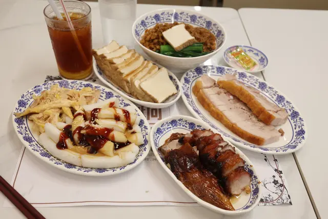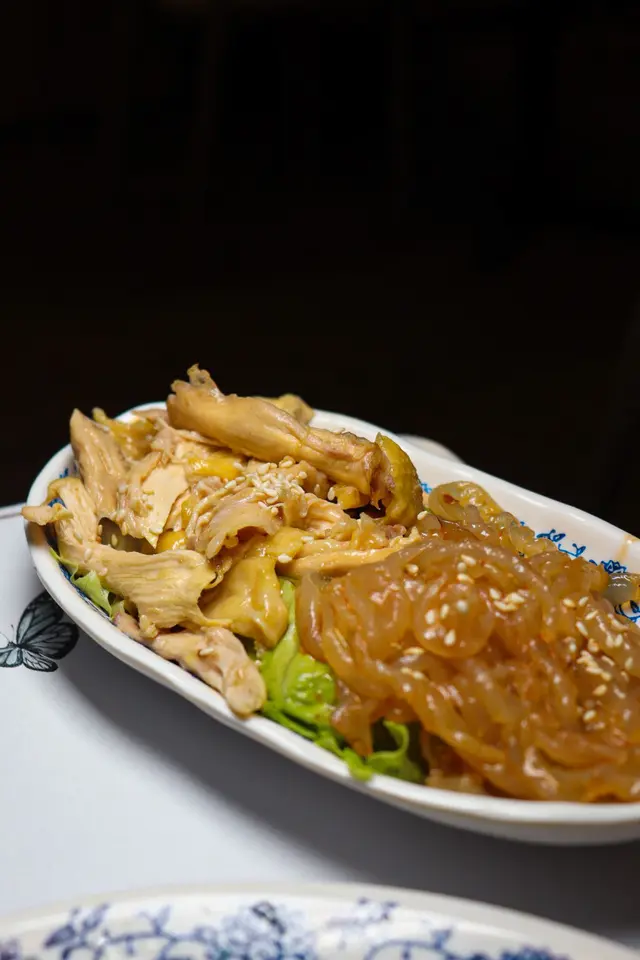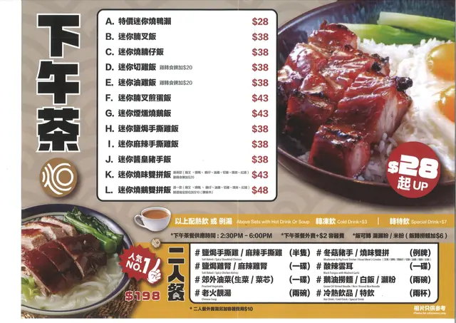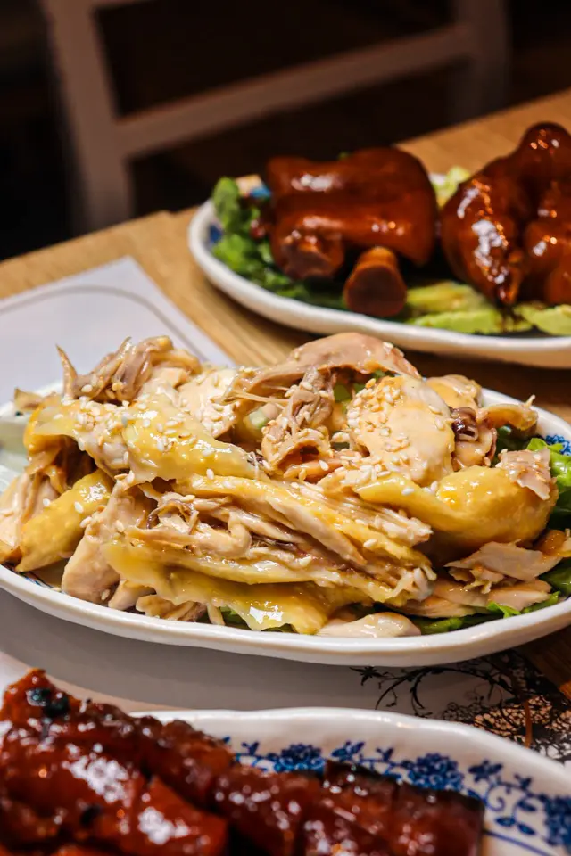 下午茶餐 鵝油 手撕盬焗雞 撈粗 + 熱飲