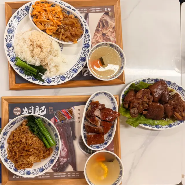 第一次去,兩個人叫咗招牌煙燻燒鵝鵝油撈麵(鵝尚算多肉),海蜇拼手撕雞飯,仲有4件醬皇豬手,全部都好出色。仲送咗兩碗老火湯,叫埋兩杯凍檸茶,埋單$184。一定會再去~查看更多