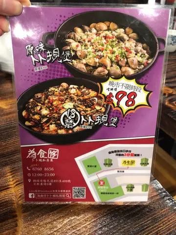 為食仔卜卜蜆私房菜 (銅鑼灣) 網址: https://s.openrice.com/QrbS0HlK800 地址: 香港銅鑼灣駱克道491-499號京都廣場9樓 電話: +852 67608656