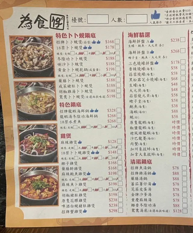 提供多款特色鍋底的新派海鮮火鍋店,招牌菜為卜卜蜆鍋及龍蝦海鮮鍋。