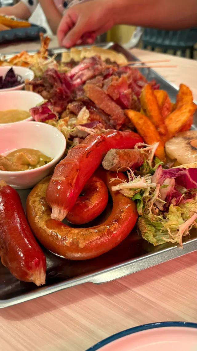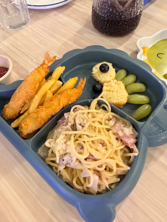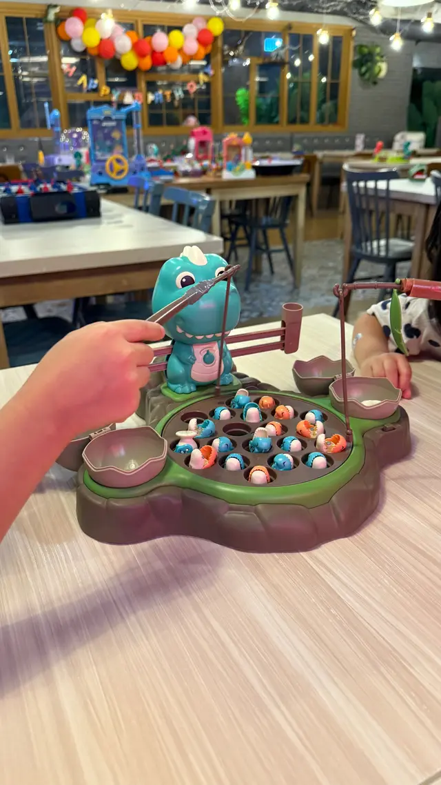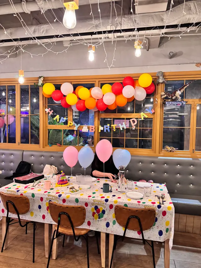 去到尖沙咀帶小朋友食飯,就梗係要去啲親子餐廳啦厚福街一上到去就發現到呢間恐龍餐廳,上邊啲佈置係全部都恐龍嚟㗎,咁啱有人準備開生日會,佢仲可以免費佈置得好靚㗎🥰佢有好多board game ,又有遊戲機射籃球都好適合大人玩,當然啦,仲有好多啱小朋友玩嘅遊戲嘢食方便都唔使擔心,我哋今次嗌咗一個豬手拼盤,有燒大蝦,燒菠蘿,仲有幾款燒腸仔,個豬手個皮好脆啱啱好唔太鹹,炸薯角大人小朋友都啱食仲有兒童餐,有個白汁意粉炸魚薯條,仲有少少生果夠晒健康👍🏼佢有好多嘢飲都好特別,可以一路玩一路飲,仲要唔限時真係聚會嘅好地方查看更多
