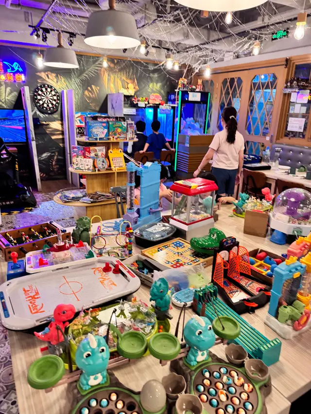 朋友帶我哋去咗尖沙咀一個恐龍主題親子餐廳,呢度充滿驚喜同歡樂!一入到餐廳,哇,成個空間都係恐龍主題,牆上、枱上到處都係恐龍擺設,連餐具都係恐龍造型,超可愛!仲有兩隻恐龍公仔喺門口同你say hello,超有氣氛!小朋友一見到已經興奮到飛起,大人都忍唔住影相打卡!呢度真是一個親子天堂!除咗恐龍裝飾,餐廳仲有好多玩意:賽車機、籃球機、街機、夾公仔機、彈珠機,樣樣齊全,滿枱都係玩具,小朋友玩到唔捨得走!仲有board game畀大人hea玩,無論大人細路都啱晒!如果想幫小朋友搞生日會,呢度絕對係一個好選擇,氣氛同設施都好適合!霸王龍小食拼盤 ($148):炸雞翼、薯條、洋蔥圈一應俱全,外脆內軟,適合一班人share!招牌西班牙海鮮飯(細)($188)飯粒吸晒醬汁精華,濃而不膩,份量啱晒2-3人share!夏威夷比薩 ($98)菠蘿同火腿嘅經典組合,芝士拉絲好邪惡!不得不提,入面有兒童餐 ($85)有意粉、炸物、水果、蛋糕、賓治同一個超可愛嘅恐龍玩具!啱晒小朋友嘅胃口。今次我哋一行5人點咗唔少飲品同菜式,總消費$844,價錢親民,食物份量夠,味道又唔錯,環境又好有特色,玩樂設施仲要多到唔想走!性價比真心唔錯!啱晒輕鬆聚會!「為食恐龍餐廳Mr Dino」真是一個大人細路都玩得開心嘅地方!食物選擇多,味道親民又唔失水準,環境充滿童趣,仲有唔少玩樂設施,無論大人定小朋友都玩得開心!絕對係親子聚會嘅好去處!如果你想搵個地方同屋企人或朋友輕鬆聚會,又食又玩,呢度真心推介!快啲去同恐龍們一齊開餐啦!🦖查看更多
