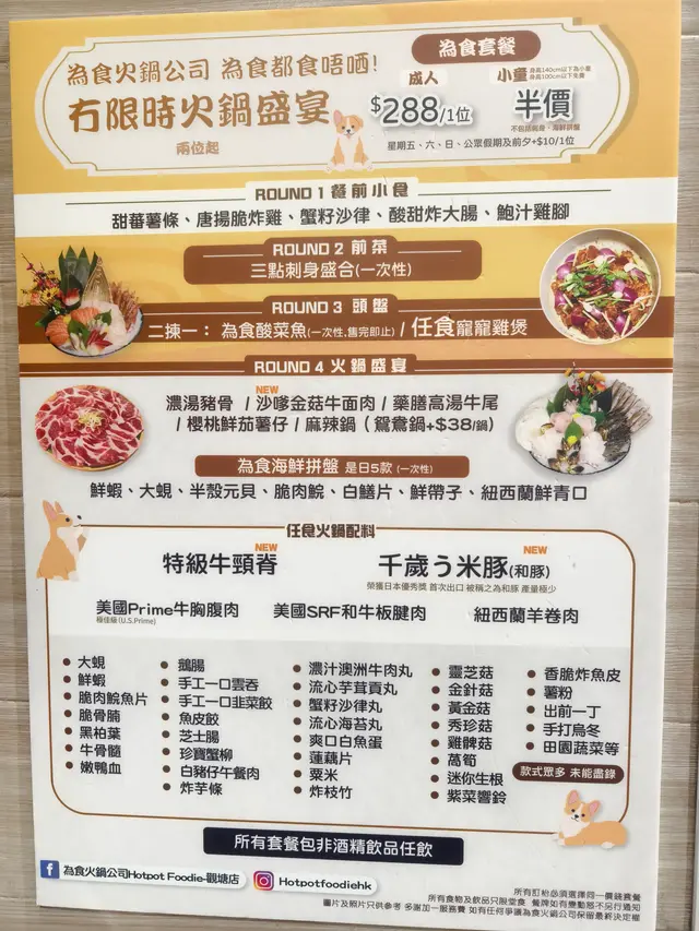 為食火鍋公司 (觀塘) 網上訂座享特別優惠兼賺Rice Dollars 網址: https://s.openrice.com/QrbS09SaA00 地址: 香港觀塘創業街15號萬泰利廣場地下C號舖 電話: +852 36188772