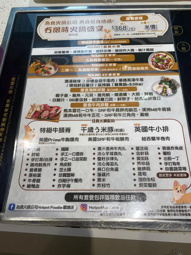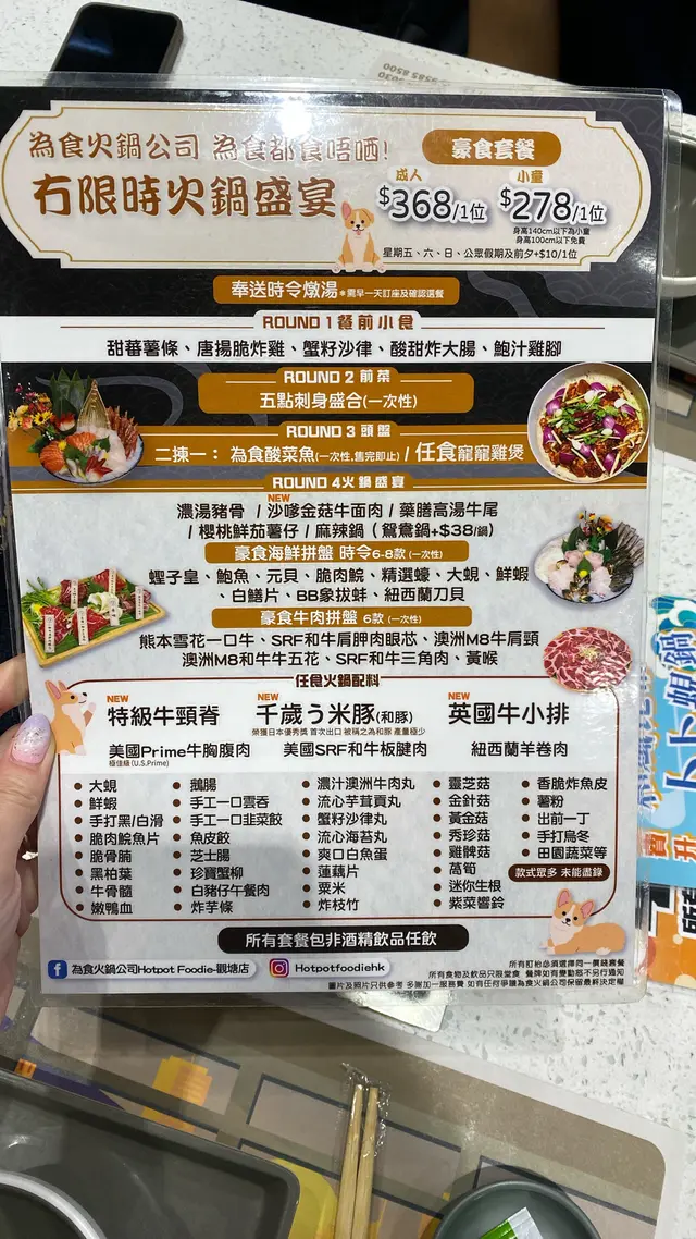 去完契女嘅生日party,附近喺觀塘工廈區,去地鐵站嘅時候經過見到呢間【為食火鍋公司】,決定食埋晚餐先返屋企。呢度主打無限時豪食火鍋盛宴,一位成人只需$368(兩位起),坐低就已經感受到「盡食」同「高質」嘅雙重享受。 裝潢走年輕活潑風格,以光亮開放式座位為主,寬敞舒適,聚餐氛圍輕鬆熱鬧。自助飲品區設有汽水啤酒任飲,啱晒一班朋友開懷大食,到尾仲有雪糕甜品作結尾,完美。