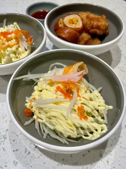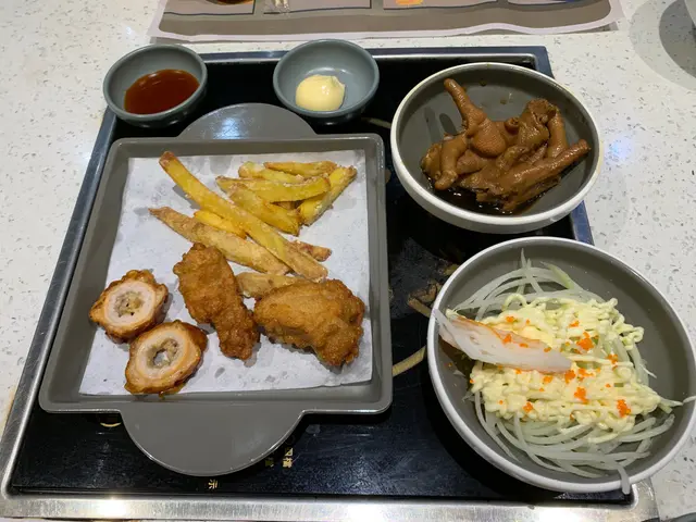 甜蕃薯條、唐揚脆炸雞、蟹籽沙律、酸甜炸大腸、鮑汁雞腳第一擊就令人驚喜,甜蕃薯條香脆不膩,炸雞皮脆肉嫩。蟹籽沙律清爽,為味蕾做好準備;酸甜炸大腸外脆內腍,掛汁得宜;鮑汁雞腳則滿口膠質,啖啖濃香。 雖然可以任點任食,我哋食一轉已經好滿足。