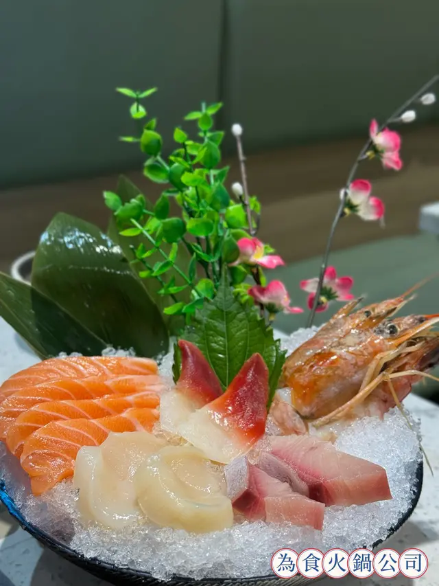 五點刺身盛合(一次性)五點刺身盛合新鮮亮麗,刺身切件厚薄適中,魚生光澤晶瑩,入口冰涼清甜,為火鍋主場拉開序幕。