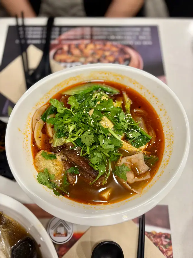 烏蠅館响寶林都有一段時間,由商場地舖到家下商場二樓,我一直話想食,一直都冇幫襯過,終於下定決心,一試呢間開到去日本嘅烏蠅館嘅美食到抵如何。我點咗「雞脾雞湯米線」,「紅油皮蛋」配「桂花烏龍茶」嘅餐;另一個餐係冒菜C餐,配菜有芋絲、豆皮、蘿蔔片、雞肉、肥牛、鴨血、豬大腸、午餐肉同火鍋麵,要小辣麻辣湯,配懷舊大大杯紅豆沙冰。「紅油皮蛋」係跟餐唔使加錢,辣味夠香,同埋醋味都好突出,而且有半隻都算係咁。諗住下午茶嘅「雞脾雞湯米線」唔會好大碗,點知不單只唔細碗,仲要係大大隻嘅雞髀,咬落鮮嫩多汁,大大隻極具口感;湯底非常清澈,但同時帶出濃郁嘅雞香味,而且輕輕帶出藥材嘅回甘。响雞髀下有唔少嘅蟲草花,完全係一個養生嘅米線,加上爽口彈牙嘅米線,成個菜式配合到天衣無縫,呢個算係我食過最好食嘅米線之一。有8款餸嘅冒菜,冒菜係啲川菜嘅菜式,8款餸我揀咗芋絲、豆皮、蘿蔔片、雞肉、肥牛、鴨血、豬大腸同午餐肉,佢唔係每款一件,由二至四件等,如蘿蔔片薄切有四片,但非常爽脆有口感,而唔係淋哂一篤嘢咁,非常討喜;比較驚訝嘅係佢個豆皮係非常煙靭,最後我放棄冇食哂佢。最驚喜係個火鍋麵,我一直以為係普通嘅公仔麵,但原來係我好鍾意嘅扁身麵,好爽好有口感,吸收咗佢獨特嘅麻辣湯汁,麻香氣、辣嘅刺激,加上爽彈嘅麵,唔想講得太誇張,但真係不得了。好慶幸冇揀錯嘢,隨咗個豆皮之外。餐飲我點咗「桂花烏龍茶」,好清香解湯,我多手摵開出嚟睇,入面堅有茶,唔係hea沖啲茶入去,誠意十足。而呢杯「懷舊大大杯紅豆沙冰」,因為唔係我飲就唔比個人評價了。今次一試,的確係有驚喜,味道上嘅刺激令我一定會回頭。佢嘅味美更帶到日本涉谷,真係不得了,希望佢能帶出更多新菜式同保持住呢個水準。…查看更多