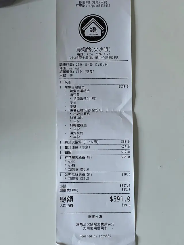 烏蠅館 (九龍中心大廈) (尖沙咀) 網址: https://s.openrice.com/QrbS09AOA00 地址: 香港尖沙咀亞士厘道29-39號九龍中心大廈地下G29號舖 電話: +852 26062722