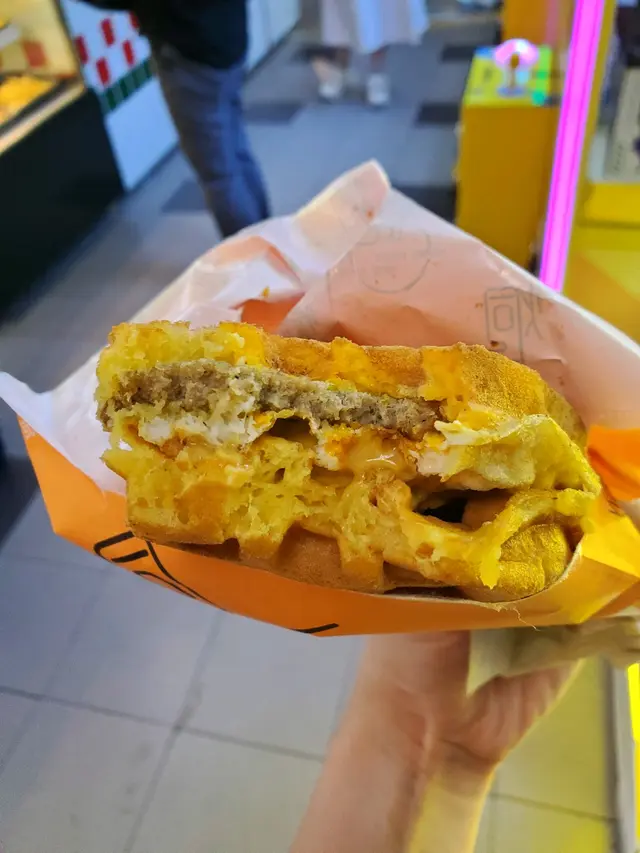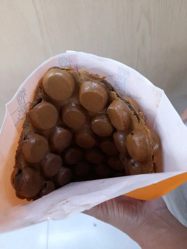 1-6-2025(Sun)晏晝,同老公食完貓麵嘅美食後,肯定唔夠飽,我見到呢間人氣雞蛋仔/格仔餅就係隔兩個舖位,於是同老公行嚟睇,佢有雞蛋仔,格仔餅同麻糬雞蛋仔,而味道,都肯定有𠲖o家流行嘅開心果味,不過我哋唔想試,而我就想試流心奶黃雞蛋仔,不過我俾老公揀,佢揀咗$34.00伯爵麻糬雞蛋仔,我見又可加$18.00有開心果牛乳幾吸引,於是都忍唔住要,但用奶樽裝住咁玩嘢?等咗10分鐘後就有,店員話開心果牛乳要搖勻至飲。睇見樽嘢綠白色分明,真係要自己攪勻,食雞蛋仔先,佢暖暖地,味道啱啱好唔會太濃,外面脆但唔係太脆,麻糬偏腍少少,都OK嘅,而一底都唔算細份。4.5分開心果牛乳呢?我哋用飲管攪都攪唔勻,飲唔到開心果味,唯有唔飲住,拎返屋企至飲,反正如上篇貓麵食評提到,要去LEMMIE買嘢飲。點知,當我哋行完晒葵芳,我諗兩個鐘後,老公拎出嚟睇,佢自己搖勻咗。返到屋企雪住,食完晚飯拎出嚟飲,就真正飲到開心果嘅味道,佢唔係太濃,我覺得啱啱好,不過如果冇開心果粒會好啲。5分服務:唔錯嘅,聽佢叫咗啲no.冇人嚟拎後,隔一陣又會再叫返。題外話:其實佢用奶樽裝係咪gimmick?但之後我至諗到,佢哋應該覺得要客人自己chok,就好似開奶咁chok至勻,所以用奶樽。另一個幽默點係,我見到佢哋有張海寫50年老店,心諗作咁大?於是睇真啲,原來後面寫住‘’還差49年‘’,佢哋成功做到吸睛宣傳效果。抵食係2.7分…查看更多