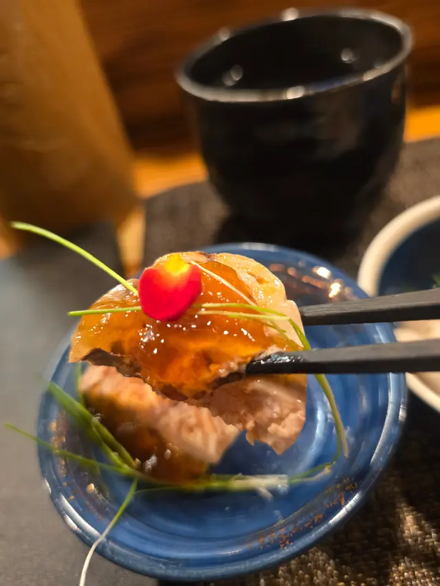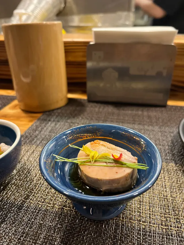 聽聞呢間係一間不一樣嘅日式居酒屋,有串燒Omakase ,所以抱住好奇嘅心情同朋友一齊來到呢到食晚餐!環境充滿日式元素!師傅仲好親切,好有耐心咁介紹每道菜!聽得出餐廳對食材同埋調味都十分講究,係一間有誠意嘅居酒屋啊~✨銀鱈魚刺身銀鱈魚刺身經輕輕火炙過!味道鮮美,配搭昆布同埋黑松露,滋味十足~✨白子白子非常新鮮,入口有一種柔滑細膩嘅感覺~✨黃金蟹籽沙律選用咗爽口嘅黃金蟹籽加切片嘅青瓜整成嘅沙律,口感與別不同~✨燒牛舌芯牛舌芯用碳鹽醃過,肉味香濃,柔軟多汁~✨黑毛豚肉五花腩五花腩用岩鹽醃過,口感微脆,比人一種油而不膩嘅感覺~✨雞胸脆骨口感充滿層次感!而且用檸檬醃過,味道清新~✨雞頸肉雞頸肉同樣用檸檬醃過,肉質緊實,帶有嚼勁~✨阿波尾雞翼雞全翼燒到外脆內嫩~✨免治雞肉串免治雞肉口感豐富,點埋蛋黃汁,味道一流~✨鰻魚串鰻魚燒到皮脆肉嫩,用咗蝦鹽去調味,令到鰻魚嘅海鮮風味更為突出~✨黑草羊係用咗自家本地農場養嘅黑草羊!肉質柔嫩,重點係完全冇臊味,好有驚喜~✨自家製鮮魚湯呢碗湯係完全冇落過一粒鹽,但魚嘅鮮甜味依然濃郁,正~…查看更多