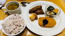 四品料理可以揀2款冷盤+2款熱盤,配埋餐湯及飯,而我就將飯改咗要蔬菜,另外再加$25要埋抹茶紅豆芝士餅