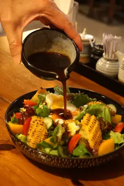 假日同朋友相聚dinner, 去了上環呢間門面很有日系感嘅居酒屋, 餐廳分上下兩層, 裝修簡潔, 很有日本地道特色。【無敵家招牌沙律】$98份量十足, 沙律菜新鮮清爽, 配搭粟米、青瓜、蕃茄、黃桃等等…額外自行加上酸酸甜甜醬汁, 清新開胃。【味醂雞泡魚干】$78雞泡魚干近似魷魚絲, 唔會太乾太硬, 甜甜地, 點沙律醬食, 味道更加提升。【免治雞肉軟骨棒】$58餐廳自家制, 表面燒得焦香, 雞肉棒有豐富鮮甜肉汁, 內有軟骨碎, 食落有層次, 再點埋蛋黃汁時, 增添黏滑感。【牛柳串】$78肉味濃郁有咬口感, 沾蛋汁食, 多一點黏滑。【厚切牛舌】$58選用牛舌芯, 烤後依然keep到肉汁, 爽口彈牙, 大愛!!【豚肉荔枝卷】$42微微燒焦嘅豚肉片卷住了多汁清甜嘅荔枝, 整個入口, 荔枝汁平衡了豚肉僅餘嘅膩。【日本蕃薯】$35蕃薯連皮燒, keep到原汁原味, 甜甜地, 幾好食。【叉燒拉麵】$90叉燒大大塊厚薄適中, 肥瘦均勻, 湯底係由豬骨淆成, 真材實料, 濃郁味美, 浸滿湯汁的拉麵入口仍然QQ彈牙。…查看更多
