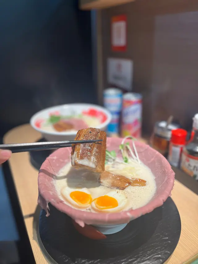 <無限拉麵> @mugenramen_hk#mochicouple_hk灣仔搵食團〈無限拉麵〉主打多款濃厚系拉麵,用上和牛牛骨、魚介、豚骨等湯底長時間熬煮,湯香濃郁又唔油膩😍店內以木系設計配柔光燈,日式感滿滿🍜~每碗拉麵份量爆多,視覺滿分,啱晒打卡+慰勞打工仔放工心靈😋💖⸝⸝⸝♡ ꔛ ꔛ ꔛ ꔛ ꔛ ꔛ ꔛ ꔛ ꔛ ꔛ ʕ´•ᴥ•`ʔ ‧˚1️⃣特製和牛牛骨白湯拉麵($168)濃厚奶白湯✨~原來係用大量牛骨長時間熬煮出嚟,香滑又有層次🤤。啖湯落口濃而不膩,牛骨香氣滿滿,飲到停唔到口😍。🔥碗邊圍滿9大片粉嫩和牛,薄切得啱啱好,輕輕沾湯後嫩滑入味,牛味濃郁💗叉燒燒到焦香,邊脆心嫩,加埋糖心蛋、筍、蔥花、洋蔥粒同幼麵條——掛汁力強,每條麵都吸滿牛骨湯精華🧡2️⃣醬油魚介拉麵($95)湯底走清爽風💦,魚介香氣十足~第一啖已經感受到海味同醬油融合嘅深層鮮甜🐟。湯濃而不鹹,飲落舒服唔滯。和牛片+叉燒組合,鹹香得嚟帶少少甜味😚麵條幼滑彈牙,吸湯能力爆強✨~3️⃣餃子($45)煎到金黃燶面✨,一啖咬落超脆!外皮香脆微煙韌,內餡肉汁滿滿~🤤內餡比例完美~肉香中帶菜甜,點少少特製醋汁更清新開胃!💚4️⃣雞皮餃子($45)呢個超創新🔥!居然用雞皮做餃子皮~炸得金黃香脆🤩外皮薄而脆,一咬即爆汁💦,入面肉餡軟嫩多汁!想食啲特別嘢,呢個必點!5️⃣清森蘋果汁($20)呢款日本清森蘋果汁🍎包裝超可愛~紙筒裝新奇得嚟又環保💚果味天然濃郁,酸甜比例啱啱好!✨6️⃣波子汽水($20)罐裝版波子汽水好罕見😳,雖然冇玻璃瓶版咁有氣,但味道仍然香甜清爽,啱晒配拉麵飲一啖解膩💦⸝⸝⸝♡ ꔛ ꔛ ꔛ ꔛ ꔛ ꔛ ꔛ ꔛ ꔛ ꔛ ʕ´•ᴥ•`ʔ ‧˚🌟想知道更多美食🤪記得follow@mochicouple_hk啦😍🎉📸📍灣仔皇后大道東130號地舖🚇灣仔站B2出口,步行約6分鐘🕒 Mon-Sun:11:30-15:00,16:00-21:00#無限拉麵 #灣仔美食 #香港拉麵 #和牛拉麵 #牛骨白湯 #魚介拉麵 #拉麵控 #拉麵打卡 #香港美食 #香港打卡餐廳 #日系餐廳 #灣仔打卡 #香港好去處 #食好西 #美食推介 #拉麵日常 #牛肉控 #和牛控 #深夜食堂 #拉麵控集合 #煎餃 #雞皮餃子 #香港拉麵店 #美食分享 #食評推薦 #灣仔探店 #牛骨湯 #濃厚系拉麵 #日式拉麵…查看更多