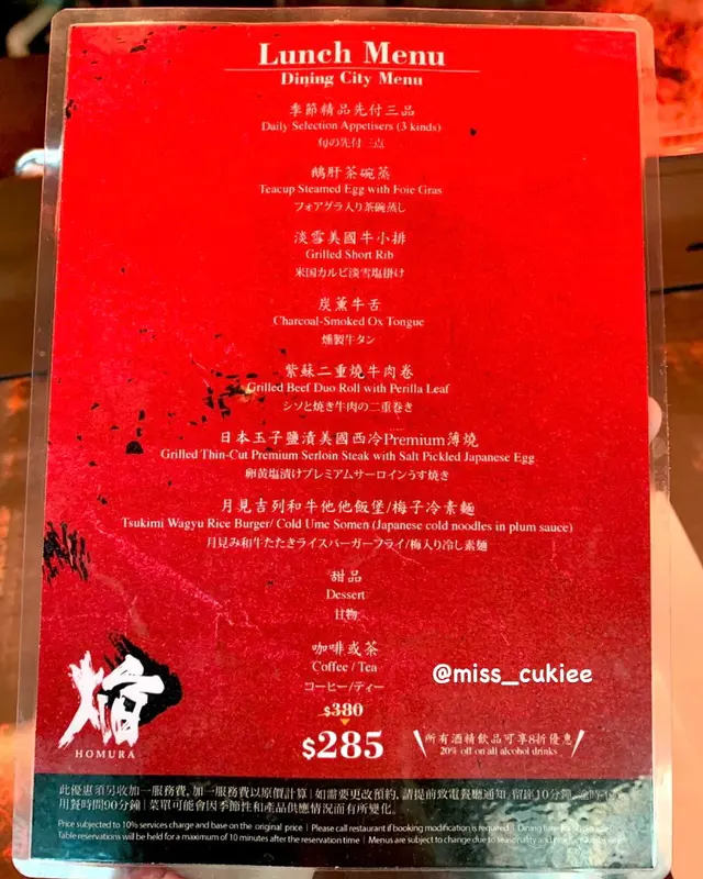 慶祝活動當然少不了一頓高級的鐵板燒.ᐟ.ᐟ.ᐟ💫之前選了銅鑼灣的Homura餐廳的設計非常特別 視覺效果超級驚艷 🌈會噴彩色火焰的霧火裝置🔥整晚都完全震懾了我們的眼球.ᐟ.ᐟ✨✦ ⋆ • ☁️☾ ⋆ • ⋆ ✦ • ⋆ ☁️ • ⋆/ 食物 Food /♡ Set B $980🪄廚師精選頭盤🪄紫蘇二重燒牛肉卷🪄A5 黑毛和牛酒香壽喜燒🪄炭薰牛舌芯🪄鵝肝茶碗蒸🪄黑毛和牛刺身配熱情果黑醋🪄慢煮安格斯封門柳飯 / 梅子冷素面🪄A5 黑毛和牛柳配玉子塩漬🪄煎帆立貝配冷壓魚子🪄甜品煎帆立貝配冷壓魚子非常有驚喜~帆立貝的表面微微焦香 口感彈牙完全意料不到的是 餐廳竟然用了一個透明小魚缸來盛載帆立貝🦋裡面竟然有一條活生生的魚兒在游來游去.ᐟ.ᐟ.ᐟ.ᐟ🐠黑毛和牛刺身配熱情果黑醋配搭新鮮沙律菜十分豐富 平衡和牛刺身的濃郁肉味鵝肝茶碗蒸鵝肝味道馥郁打成泡沫 入口十分嫩滑~🥰炭薰牛舌芯略帶煙燻 肉質非常juicyA5 黑毛和牛柳鐵板烤過之後味道特別香濃 廚師更會貼心地一邊烤一邊切粒~個人覺得牛舌芯和牛柳🥩都各有特色 味道上難分高下🍴A5 黑毛和牛酒香壽喜燒賣相非常誘人酒香和壽喜燒醬油的味道滲人心脾芋絲、豆腐、娃娃菜、冬菇及南瓜等配料豐富記得拌勻鍋子的底部來吃喲.ᐟ.ᐟ廚師精選頭盤用上鮮味十足的甜蝦和三文魚籽配上黑魚子和金箔賣相非常華麗~紫蘇二重燒牛肉卷吃起來不會很油膩沒想到紫菜和紫蘇兩者加起來味道如此合襯~甜品擺盤非常精緻🍨黑芝麻雪糕超軟滑配上香甜的蜜瓜超完美.ᐟ.ᐟ✿/ 環境 Environment /餐廳位於駱克駅18樓 空間感十足整體的餐廳設計燈光偏暗用了非常精緻的霧火裝置一邊吃鐵板燒 一邊能夠欣賞到絢爛的火焰~超級推薦大家和喜歡打卡的朋友過來賞用🎆🎇☀︎/ 服務 Service /餐廳收加一服務費 但絕對是值得的.ᐟ.ᐟ.ᐟ.ᐟ 店員主要以廣東話溝通態度誠懇有禮 服務效率極高.ᐟ.ᐟ 整個用餐體驗都能享受到超好的服務店員把菜式遞上桌前更會細心講解每道菜的吃法會不時為我們添水 也會留意我們的用餐情況因應我們的用餐速度而逐一上菜.ᐟ.ᐟ ✨❧/ 價錢 Price / 以整體環境、食物的賣相、服務質素來說晚餐性價比很高⍨✎/ 其他 Others /餐廳洗手間位於門口升降機附近 有一格 清潔程度非常乾淨衛生𓆇喜歡這家餐廳記得bookmark喔~🔖≡※≡※≡※≡※≡※≡※≡※≡※≡※≡※≡※≡※≡※≡※≡※焰 炭燒專門店 Homura銅鑼灣駱克道487-489號駱克駅18樓≡※≡※≡※≡※≡※≡※≡※≡※≡※≡※≡※≡※≡※≡※≡※…查看更多