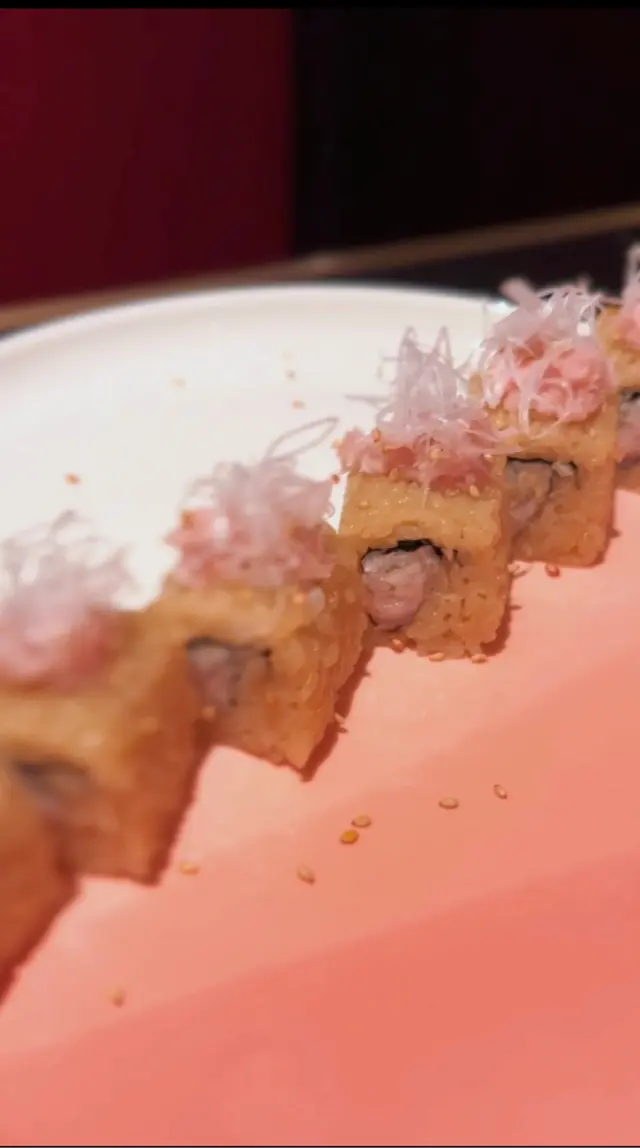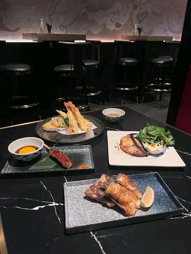 尖沙咀新開咗一間型格居酒屋,真系有一段日子冇食日本菜喇,聽番黎呢間居酒屋除咗有日本菜仲有西式菜式,一於同好中意食日本菜嘅另一半去try try。環境以紅色、黑色做主調,型格非常,就咁睇完全吾知道系食日本菜😳食物種類繁多,刺身、壽司、天婦羅、串燒等應有盡有,選擇困難症呀😆第一樣叫系蟹膏軟殼蟹卷,平時都中意食軟殼蟹,有埋蟹膏更高級,軟殼蟹好脆卜卜,平時配手卷都好match,卷物細細件品嚐更滋味。魚子醬帆立貝拖羅香芒塔,表面舖滿魚子醬、少少金箔,好高級呀🖤下面結合好多粒帆立貝粒、芒果、三文魚、拖羅,有芒果甜甜哋好易入口,配以三文魚、拖羅十分新鮮👍🏼👍🏼特上手握壽司盛合🍣廚師精心安排之款式,壽司都系食日本菜必叫的吧😁壽司六貫有海膽、油甘魚、大拖羅、左口魚、象拔蚌、鮮魷,最中意大拖羅、象拔蚌、鮮魷,大拖羅油脂豐富🤤象拔蚌、鮮魷爽口。海老天婦羅/ 帆立貝天婦羅,外皮香脆可口,蝦肉爽口彈牙,蘿蔔蓉可以同天婦羅汁撈勻,天婦羅沾上醬汁開胃啲。帆立貝天婦羅真系第一次食,帆立貝大大粒,用黎做天婦羅又幾有創意。櫻花蝦餅有特色🦐櫻花蝦味重,外皮香脆吾油膩。食日本野超中意免治軟骨雞肉棒🐔每一口都食到軟骨碎粒,雞肉棒軟淋淋,沾上日式醬油加生雞蛋更滋味。串燒又系居酒屋必食之選,煙肉蘆筍串加鹽燒白鱔,蘆筍喺蔬菜黎講真系吾錯💚鹽燒白鱔脆得黎鎖到汁吾會太乾。銀鱈魚西京燒香甜不腥,點沙律醬向來吾錯。法國鵝肝赤蝦茶碗蒸🥚茶碗蒸本身系日本菜,加入西式元素有鵝肝加赤蝦有創意。赤蝦大大隻,茶碗蒸雞蛋味香濃。最後系食豆腐雪糕,連甜品都整得好別緻😍好似貝殼🐚珍珠咁☺️豆腐味道清新,配紅豆🫘甜味令人回味。查看更多